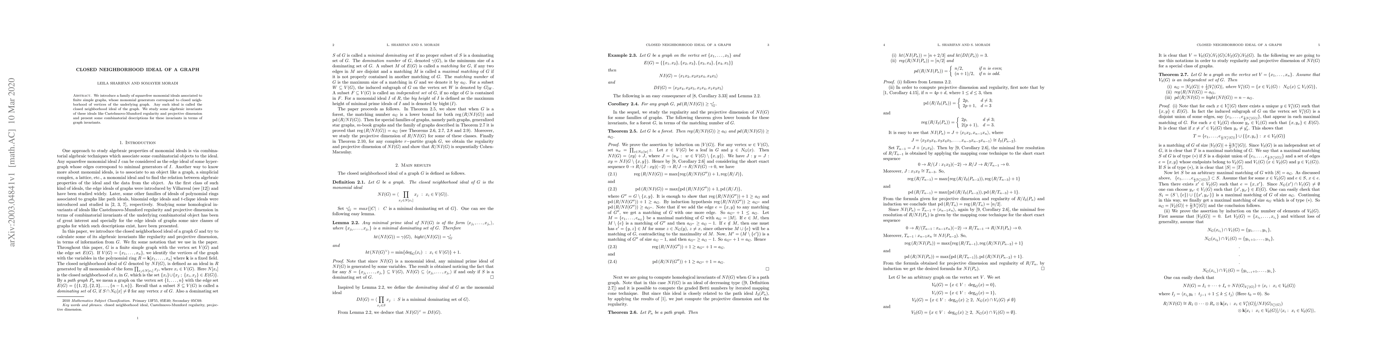 The research introduces squarefree monomial ideals associated with finite simple graphs, where monomial generators correspond to closed neighborhoods of vertices. Algebraic invariants such as Castelnuovo-Mumford regularity and projective dimension are studied, with combinatorial descriptions presented in terms of graph invariants.