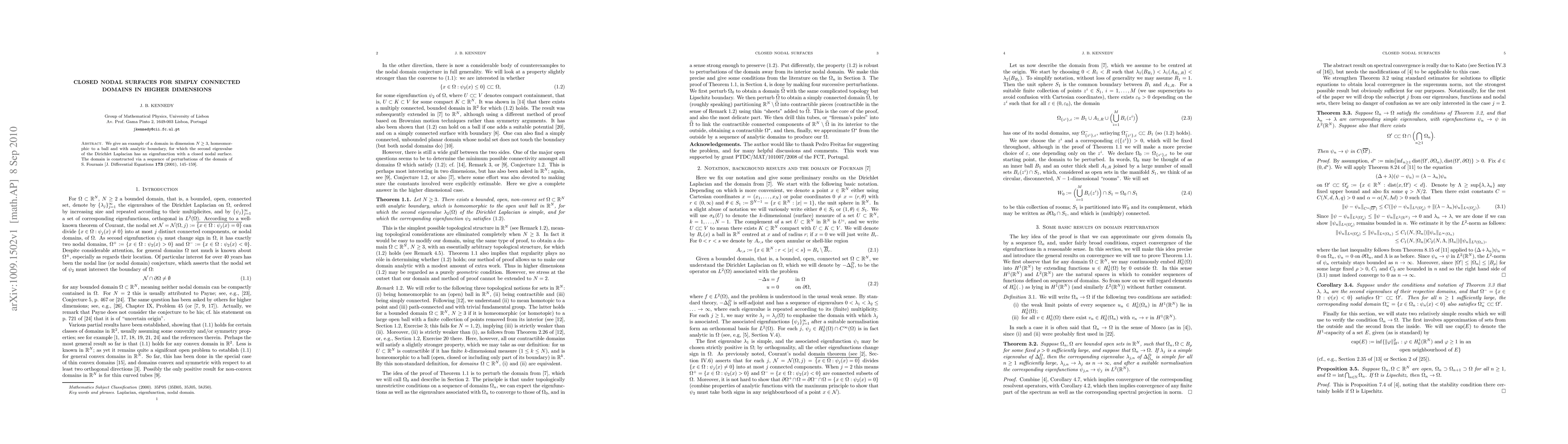 We give an example of a domain in dimension $N \geq 3$, homeomorphic to a ball and with analytic boundary, for which the second eigenvalue of the Dirichlet Laplacian has an eigenfunction with a closed nodal surface. The domain is constructed via a sequence of perturbations of the domain of S. Fournais [J. Differential Equations \textbf{173} (2001), 145-159].