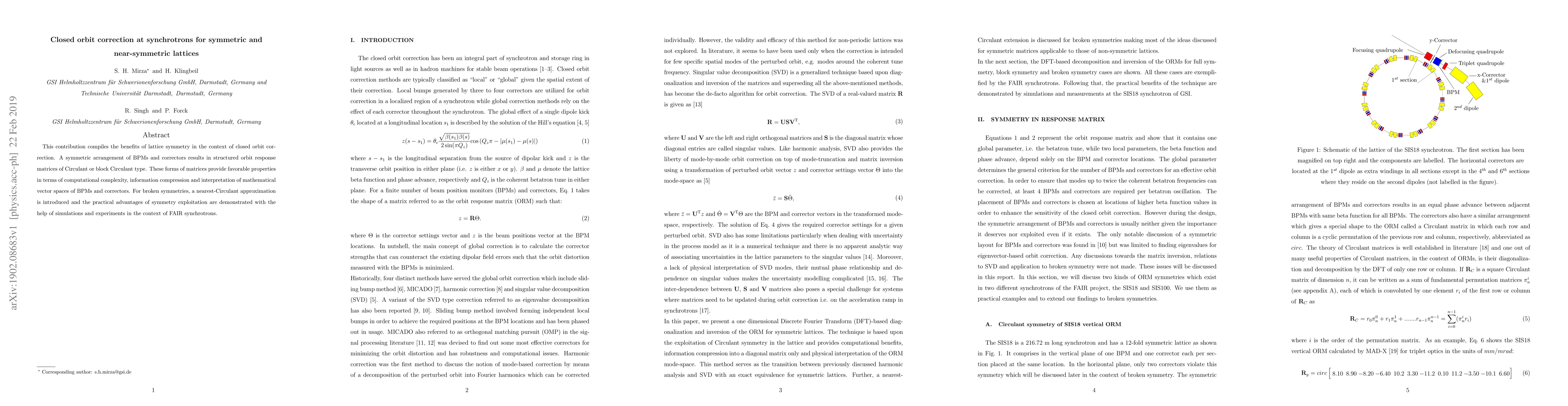 This contribution compiles the benefits of lattice symmetry in the context of closed orbit correction. A symmetric arrangement of BPMs and correctors results in structured orbit response matrices of Circulant or block Circulant type. These forms of matrices provide favorable properties in terms of computational complexity, information compression and interpretation of mathematical vector spaces of BPMs and correctors. For broken symmetries, a nearest-Circulant approximation is introduced and the practical advantages of symmetry exploitation are demonstrated with the help of simulations and experiments in the context of FAIR synchrotrons.