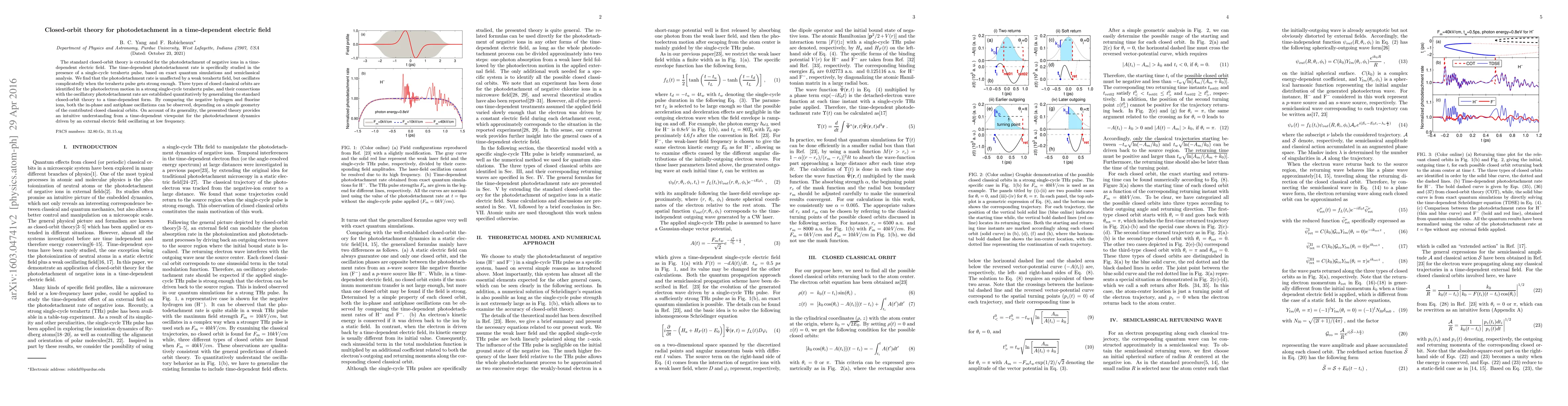 This paper extends the closed-orbit theory to analyze photodetachment of negative ions under a time-dependent electric field, particularly focusing on single-cycle terahertz pulses. The study reveals that while weak fields have no effect, strong fields induce complex oscillations in the photodetachment rate, linked to three types of classical orbits identified in the electron motion.