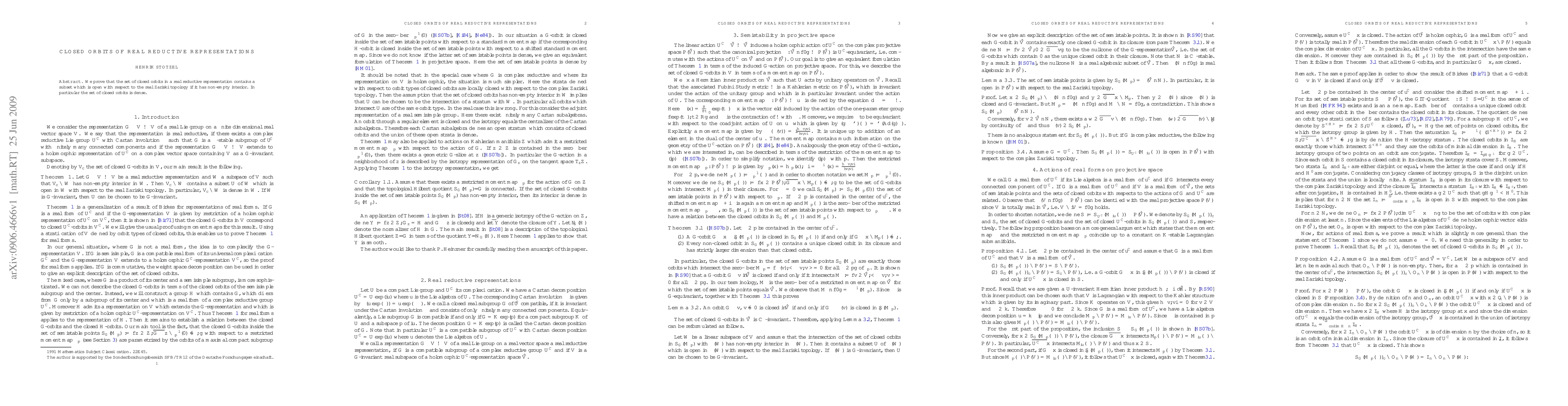 We prove that the set of closed orbits in a real reductive representation contains a subset which is open with respect to the real Zariski topology if it has non-empty interior. In particular the set of closed orbits is dense.
