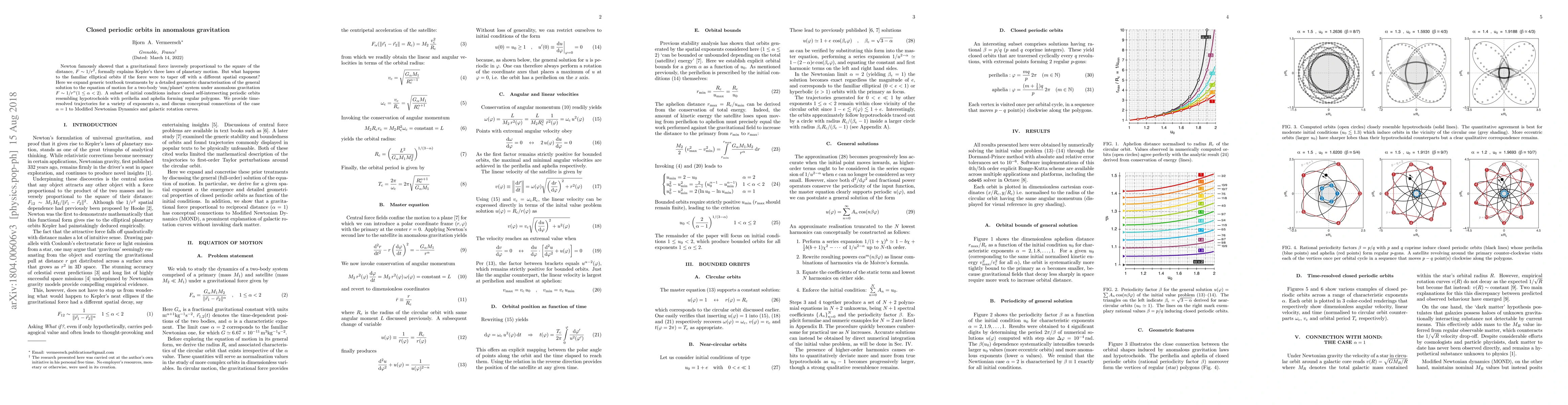 The paper presents a comprehensive geometric analysis of two-body orbits under anomalous gravitation, deriving explicit solutions and characterizing their periodic behavior.