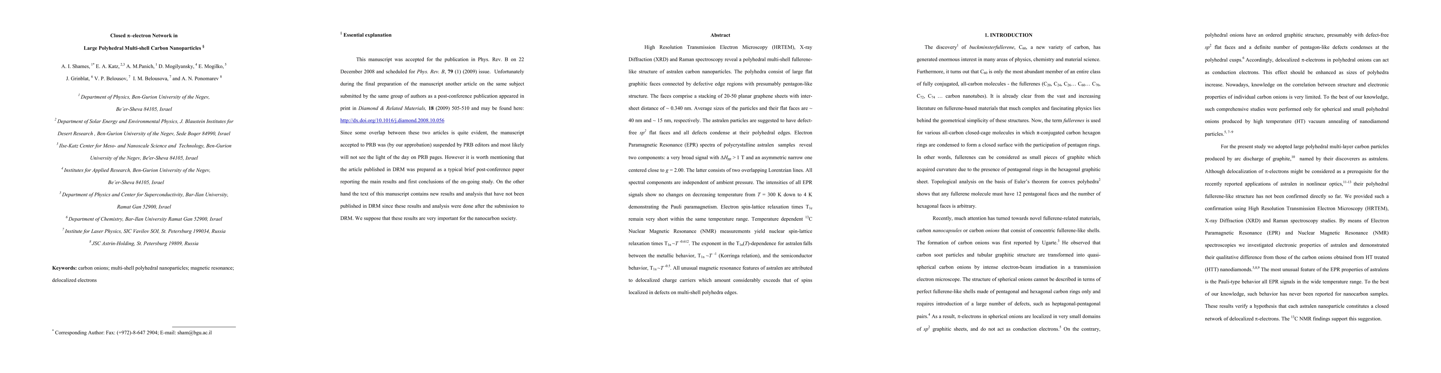 High Resolution Transmission Electron Microscopy (HRTEM), X-ray Diffraction (XRD) and Raman spectroscopy reveal a polyhedral multi-shell fullerene-like structure of astralen carbon nanoparticles. The polyhedra consist of large flat graphitic faces connected by defective edge regions with presumably pentagon-like structure. The faces comprise a stacking of 20-50 planar graphene sheets with inter-sheet distance of ~ 0.340 nm. Average sizes of the particles and their flat faces are ~ 40 nm and ~ 15 nm, respectively. The astralen particles are suggested to have defect-free sp^2 flat faces and all defects condense at their polyhedral edges. Electron Paramagnetic Resonance (EPR) spectra of polycrystalline astralen samples reveal two components: a very broad signal with DHpp > 1 T and an asymmetric narrow one centered close to g = 2.00. The latter consists of two overlapping Lorentzian lines. All spectral components are independent of ambient pressure. The intensities of all EPR signals show no changes on decreasing temperature from T = 300 K down to 4 K demonstrating the Pauli paramagnetism. Electron spin-lattice relaxation times T1e remain very short within the same temperature range. Temperature dependent 13C Nuclear Magneti? Resonance (NMR) measurements yield nuclear spin-lattice relaxation times T1n ~ T^-0.612. The exponent in the T1n(T)-dependence for astralen falls between the metallic behavior, T1n ~ T^-1 (Korringa relation), and the semiconductor behavior, T1n ~T^-0.5. All unusual magnetic resonance features of astralen are attributed to delocalized charge carriers which amount considerably exceeds that of spins localized in defects on multi-shell polyhedra edges.