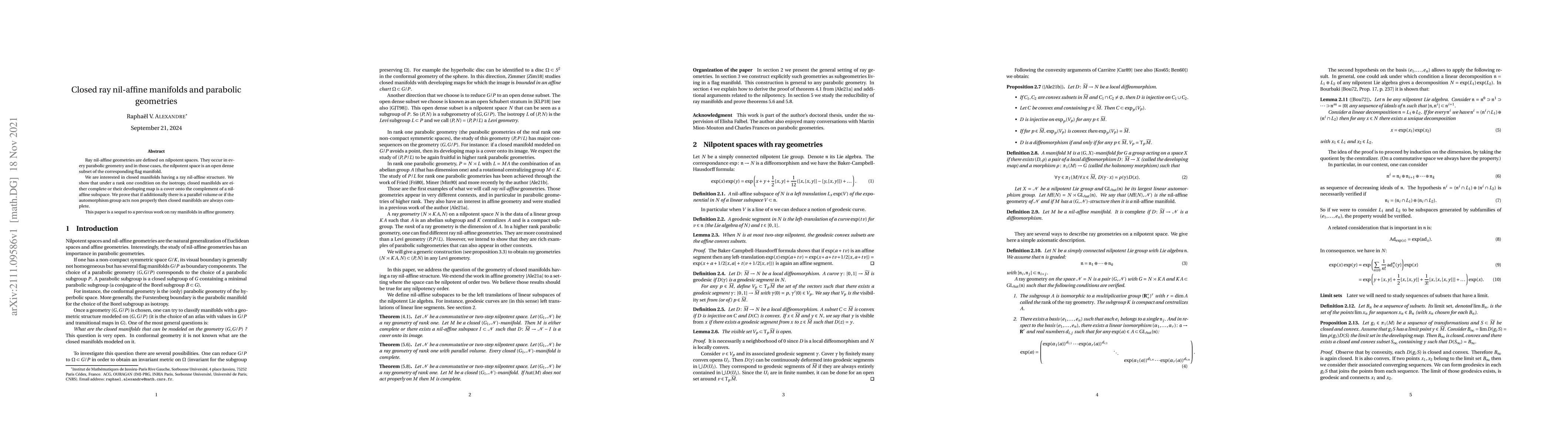 This paper explores closed ray nil-affine manifolds within parabolic geometries, demonstrating that under a rank one isotropy condition, such manifolds are either complete or their developing map covers the complement of a nil-affine subspace. It further proves that the presence of a parallel volume or improper automorphism group action ensures completeness.