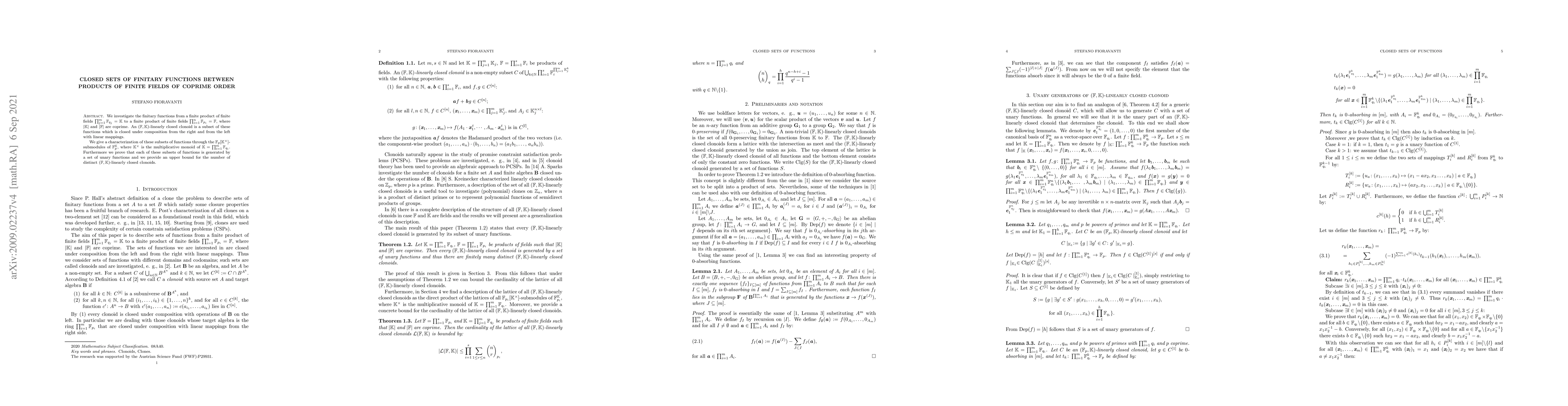 We investigate the finitary functions from a finite product of finite fields $\prod_{j =1}^m\mathbb{F}_{q_j} = \mathbb{K}$ to a finite product of finite fields $\prod_{i =1}^n\mathbb{F}_{p_i} = \mathbb{F}$, where $|\mathbb{K}|$ and $|\mathbb{F}|$ are coprime. An $(\mathbb{F},\mathbb{K})$-linearly closed clonoid is a subset of these functions which is closed under composition from the right and from the left with linear mappings. We give a characterization of these subsets of functions through the $\mathbb{F}_p[\mathbb{K}^{\times}]$-submodules of $\mathbb{F}_p^{\mathbb{K}}$, where $\mathbb{K}^{\times}$ is the multiplicative monoid of $\mathbb{K} = \prod_{i=1}^m\mathbb{F}_{q_i}$. Furthermore we prove that each of these subsets of functions is generated by a set of unary functions and we provide an upper bound for the number of distinct $(\mathbb{F},\mathbb{K})$-linearly closed clonoids.