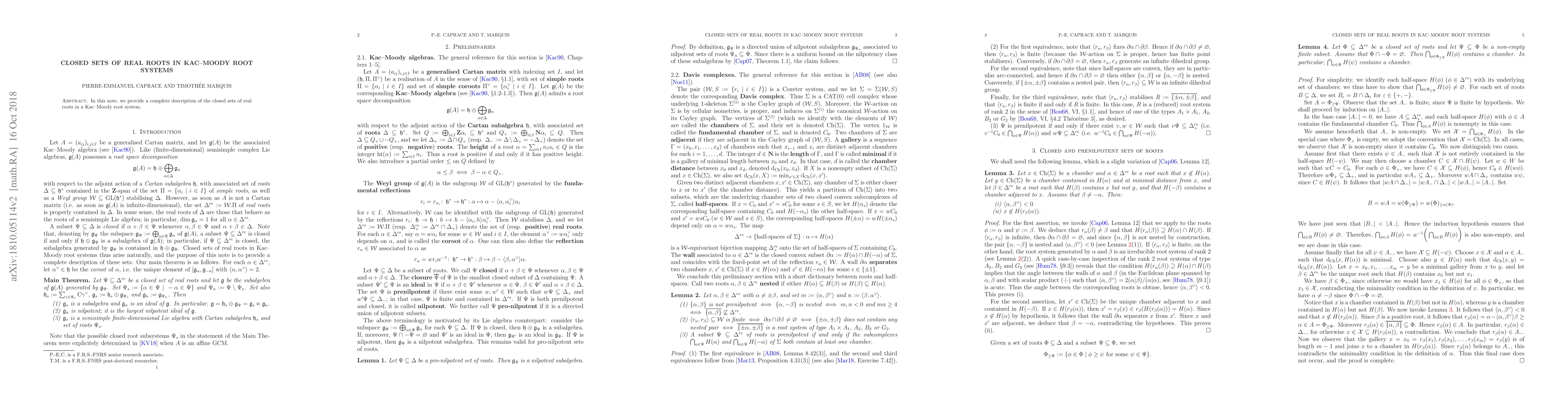 In this note, we provide a complete description of the closed sets of real roots in a Kac-Moody root system.