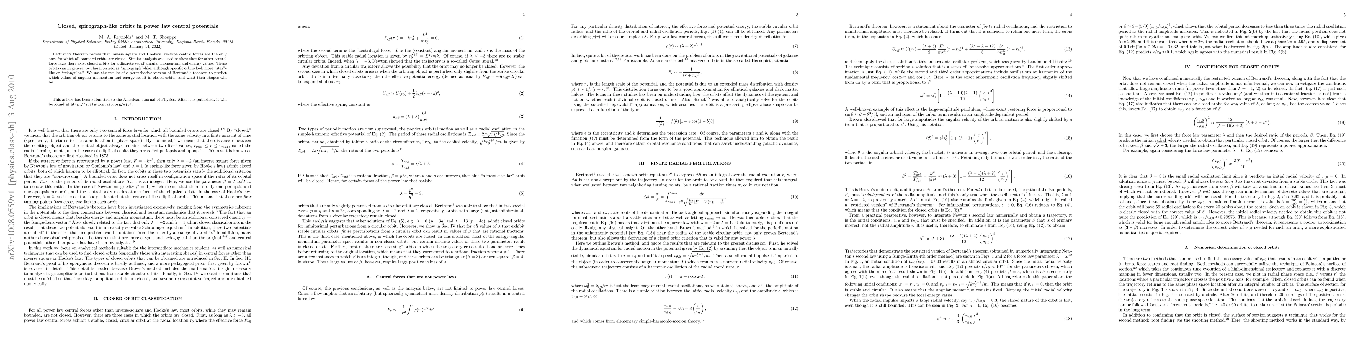This research paper uses a perturbative version of Bertrand's theorem to predict which values of angular momentum and energy result in closed orbits with specific shapes, extending the understanding of central forces beyond inverse square and Hooke's law-type forces.