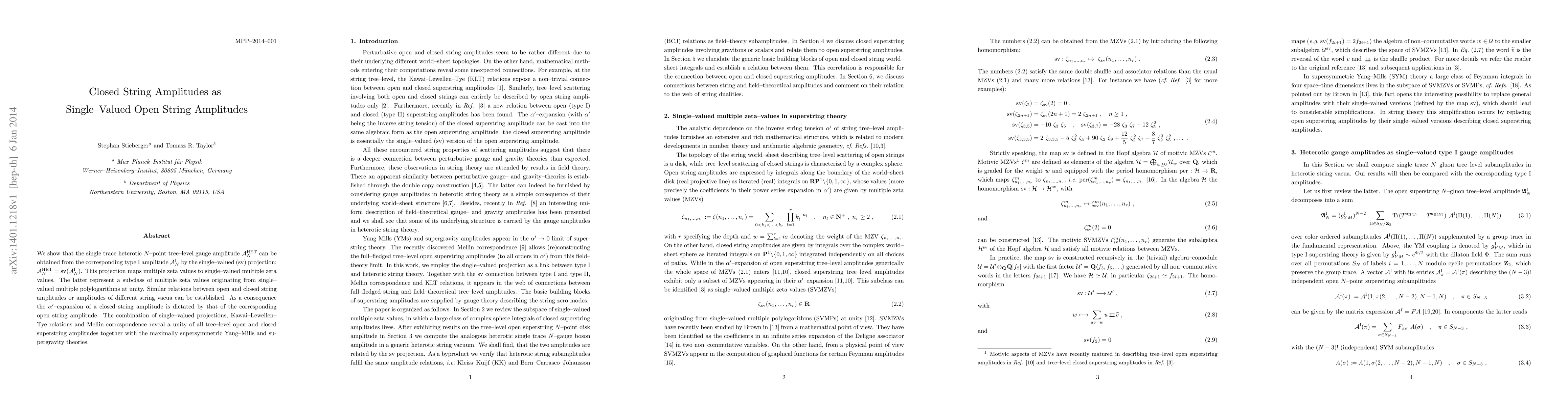 This paper demonstrates that single-trace heterotic N-point gauge amplitudes can be derived from type I amplitudes via single-valued projection, showing a unity between open and closed string amplitudes at tree level. The alpha'-expansion of closed string amplitudes is governed by their open string counterparts, revealing a fundamental connection across different string theories.