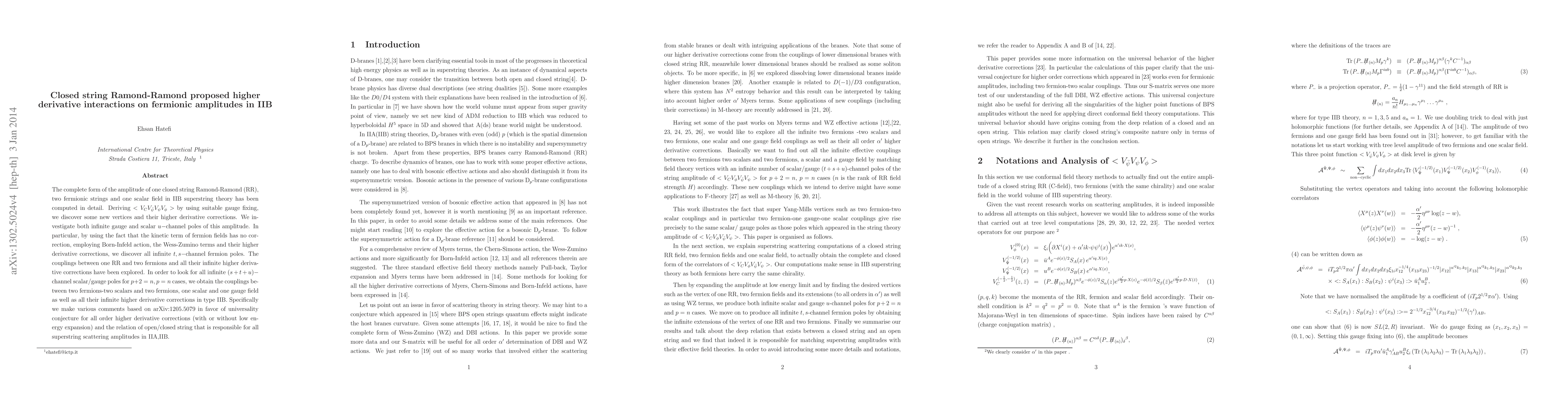 This paper computes the detailed amplitude for a closed string Ramond-Ramond vertex coupled with two fermionic strings and a scalar field in IIB superstring theory, discovering new vertices and higher derivative corrections. The study explores infinite gauge and scalar channel poles, confirming the universality conjecture for higher derivative corrections and the relation between open and closed strings in superstring scattering amplitudes.