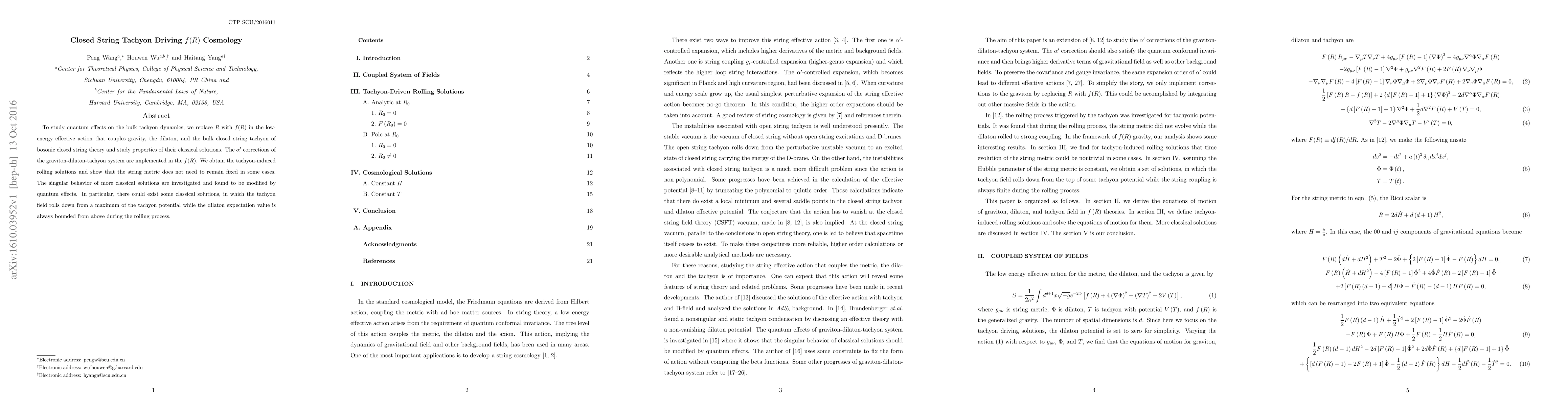 This paper investigates the impact of quantum effects on closed string tachyon dynamics within $f(R)$ cosmology, showing that tachyon-induced rolling solutions allow the string metric to vary. It reveals that quantum corrections modify the behavior of classical solutions, particularly allowing the dilaton to remain bounded while the tachyon field rolls down its potential.