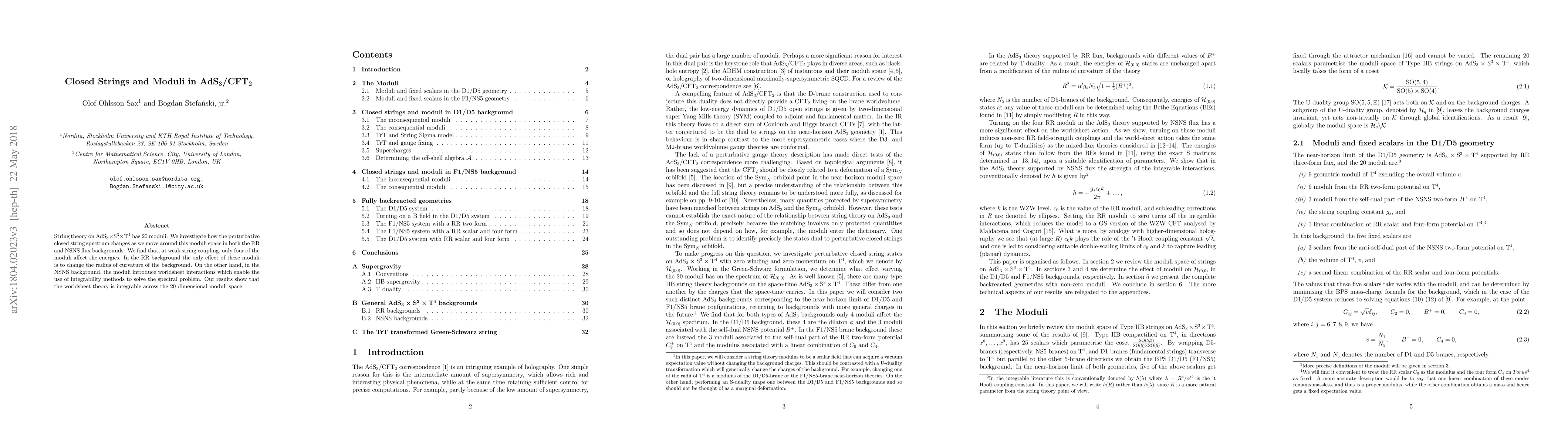 String theory on $AdS_3 \times S^3 \times T^4$ has 20 moduli. We investigate how the perturbative closed string spectrum changes as we move around this moduli space in both the RR and NSNS flux backgrounds. We find that, at weak string coupling, only four of the moduli affect the energies. In the RR background the only effect of these moduli is to change the radius of curvature of the background. On the other hand, in the NSNS background, the moduli introduce worldsheet interactions which enable the use of integrability methods to solve the spectral problem. Our results show that the worldsheet theory is integrable across the 20 dimensional moduli space.