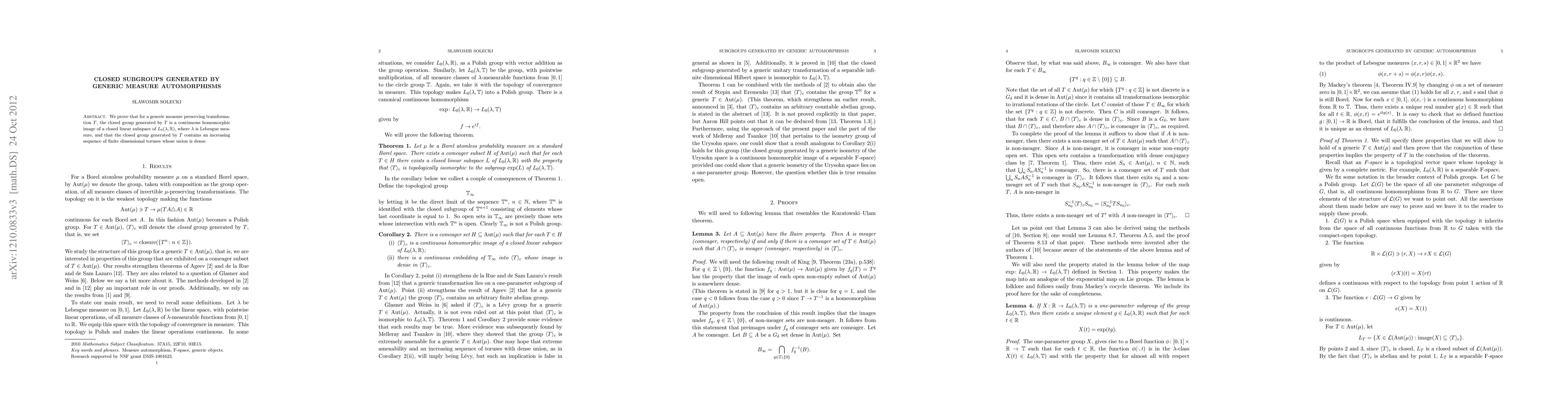 We prove that for a generic measure preserving transformation $T$, the closed group generated by $T$ is a continuous homomorphic image of a closed linear subspace of $L_0(\lambda,{\mathbb R})$, where $\lambda$ is Lebesgue measure, and that the closed group generated by $T$ contains an increasing sequence of finite dimensional toruses whose union is dense.