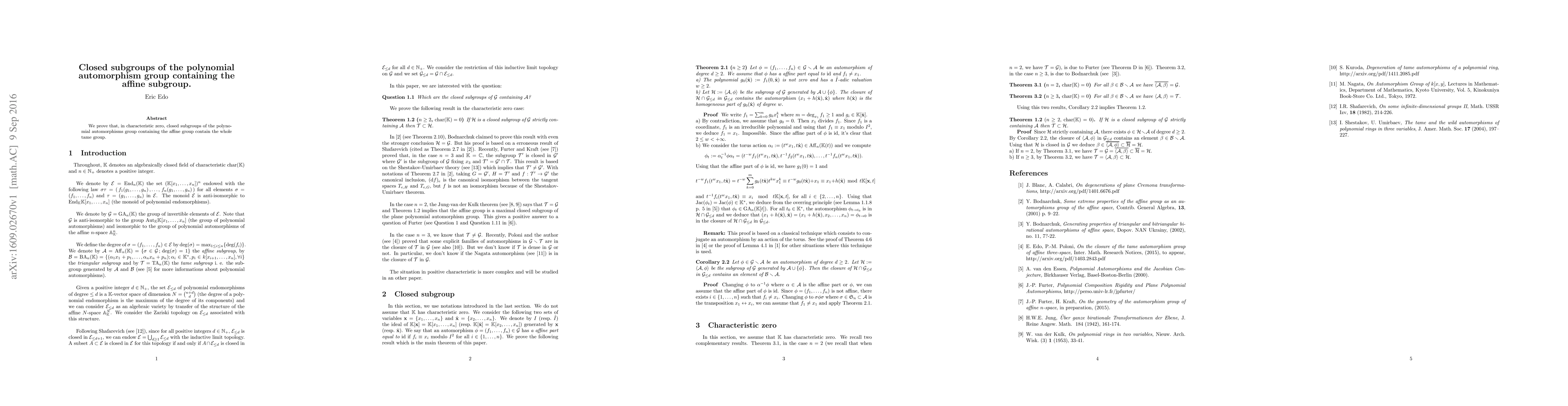 Summary: This paper demonstrates that in fields of characteristic zero, any closed subgroup of polynomial automorphisms encompassing the affine subgroup also includes the entire tame automorphism group.