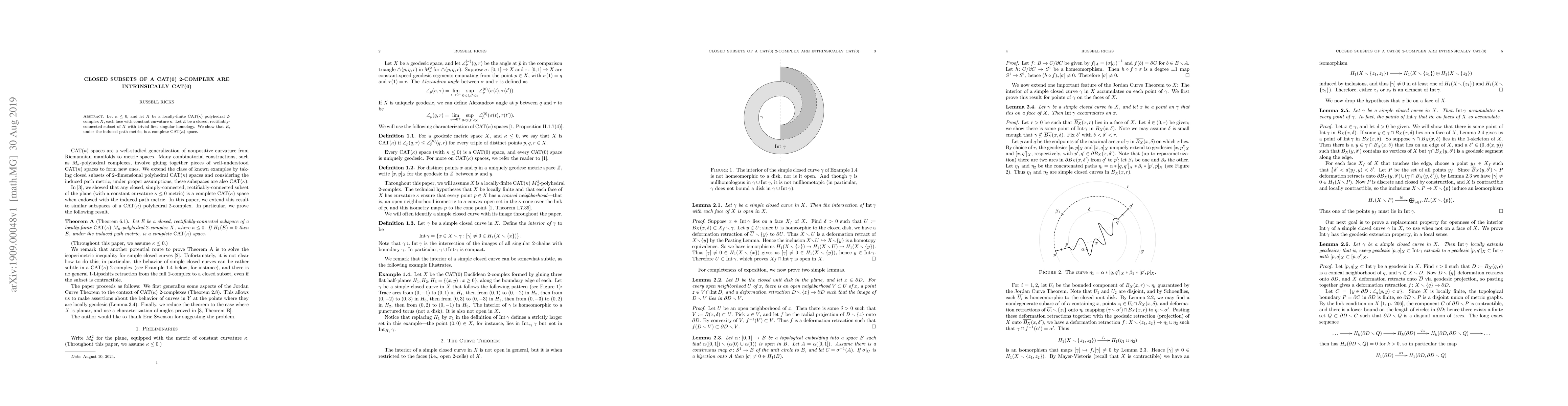 Let k be at most 0, and let X be a locally-finite CAT(k) polyhedral 2-complex X, each face with constant curvature k. Let E be a closed, rectifiably-connected subset of X with trivial first singular homology. We show that E, under the induced path metric, is a complete CAT(k) space.