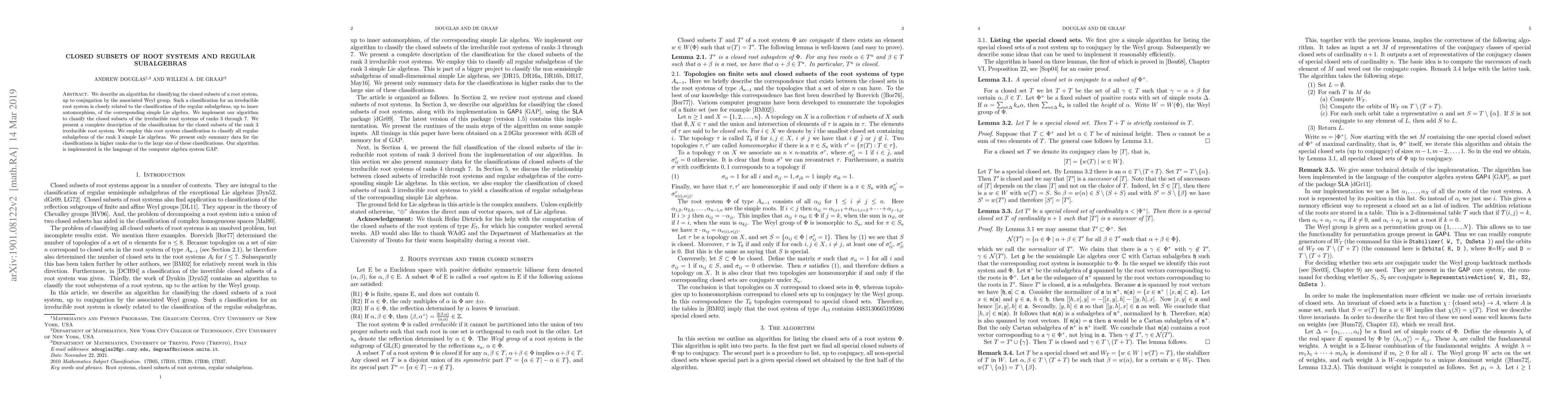 We describe an algorithm for classifying the closed subsets of a root system, up to conjugation by the associated Weyl group. Such a classification of an irreducible root system is closely related to the classification of the regular subalgebras, up to inner automorphism, of the corresponding simple Lie algebra. We implement our algorithm to classify the closed subsets of the irreducible root systems of ranks 3 through 7. We present a complete description of the classification for the closed subsets of the rank 3 irreducible root system. We employ this root system classification to classify all regular subalgebras of the rank 3 simple Lie algebras. We present only summary data for the classifications in higher ranks due to the large size of these classifications. Our algorithm is implemented in the language of the computer algebra system GAP.