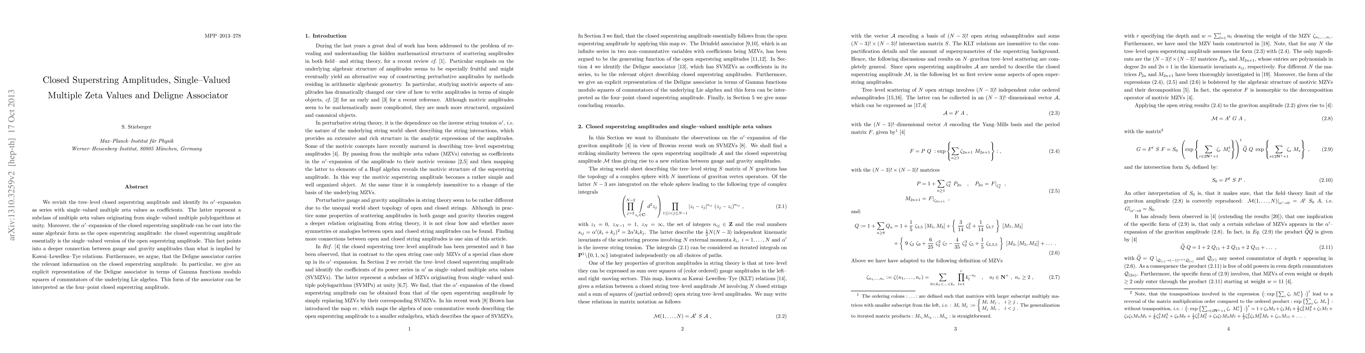 The paper identifies single-valued multiple zeta values in the alpha'-expansion of tree-level closed superstring amplitudes, revealing a deeper connection between gauge and gravity amplitudes. The Deligne associator is shown to encode crucial information about the closed superstring amplitude.