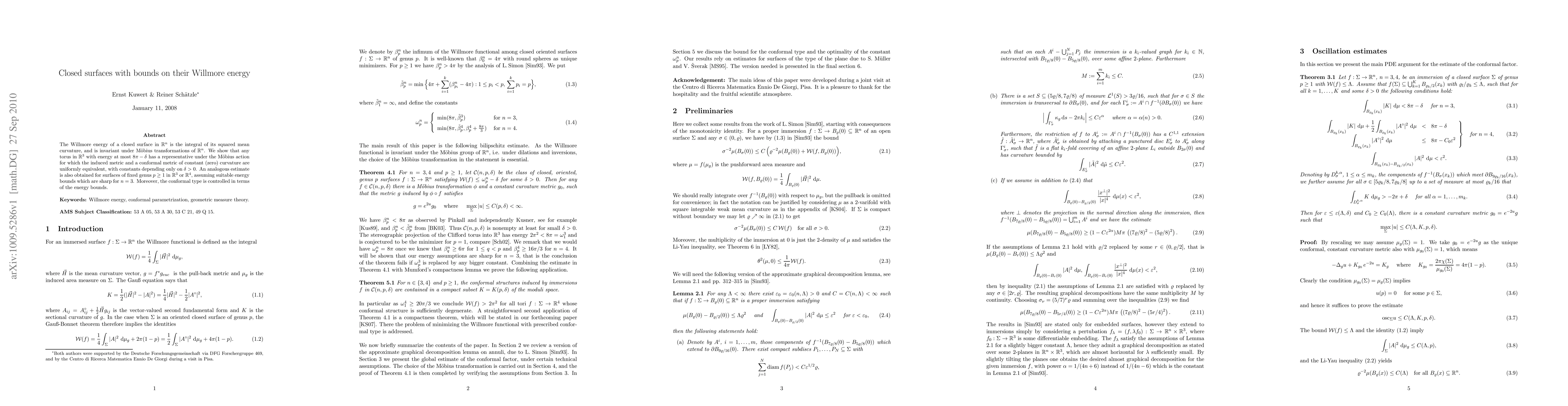 This paper demonstrates that tori in R^3 with constrained Willmore energy possess a representative under Möbius transformations where the induced metric and a conformal metric of constant curvature are uniformly equivalent, with bounds depending on the energy constraint. Similar results are obtained for surfaces of higher genus in R^3 and R^4, with energy bounds that are sharp for three dimensions.