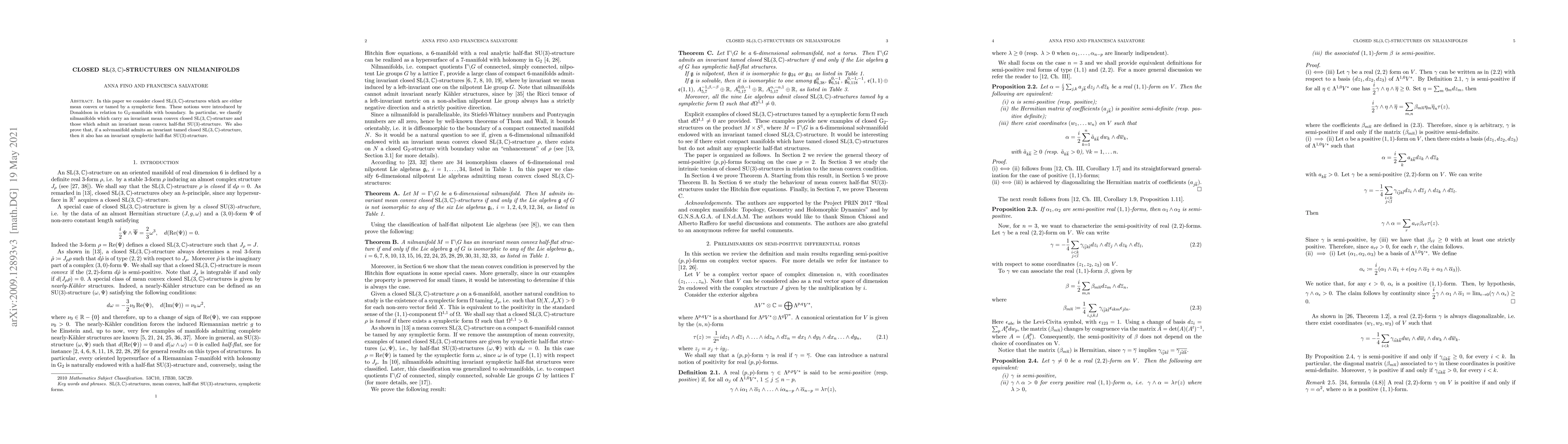This paper classifies nilmanifolds supporting invariant mean convex closed $\text{SL}(3,\mathbb{C})$-structures and proves that solvmanifolds with such structures also possess invariant symplectic half-flat $\text{SU}(3)$-structures.