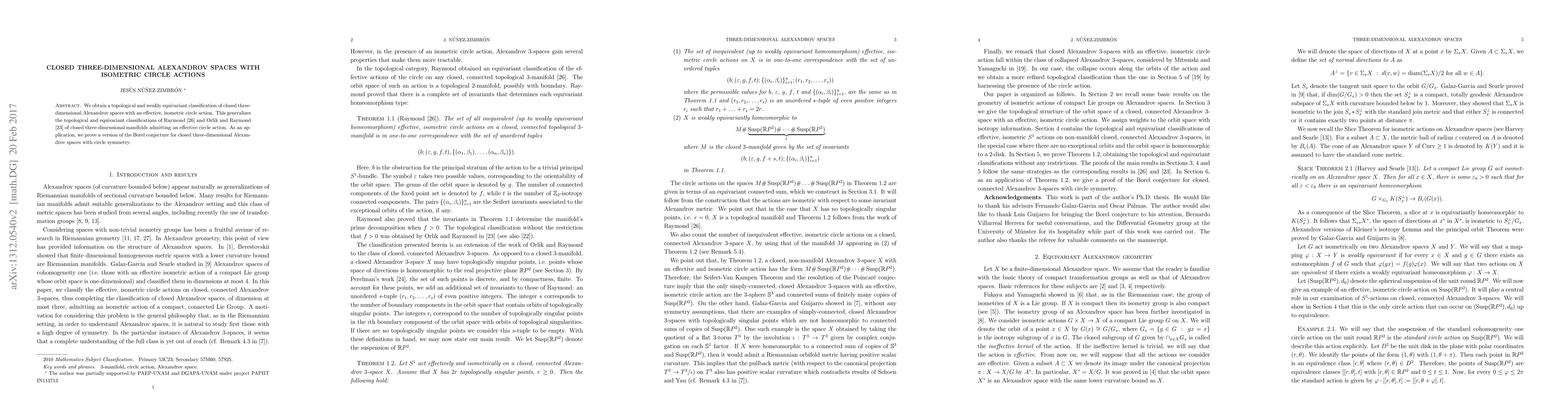 Summary: The paper provides a classification of closed three-dimensional Alexandrov spaces under effective isometric circle actions, and uses this classification to prove a version of the Borel conjecture for such spaces with circle symmetry.