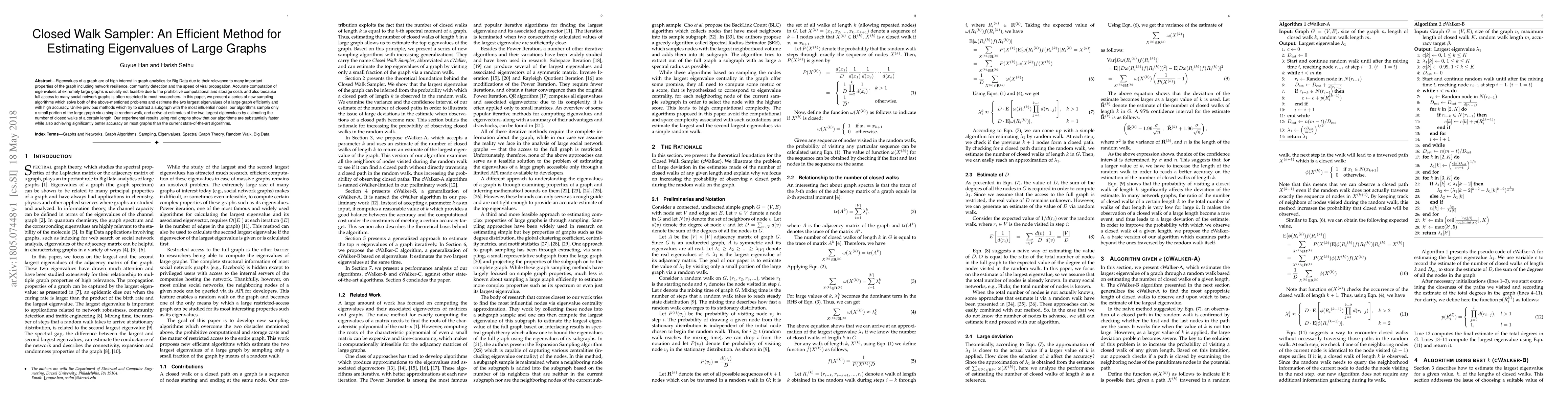 This paper introduces the Closed Walk Sampler, an efficient method for estimating the two largest eigenvalues of large graphs using random walks, significantly outperforming current methods in speed and accuracy for real-world graphs.