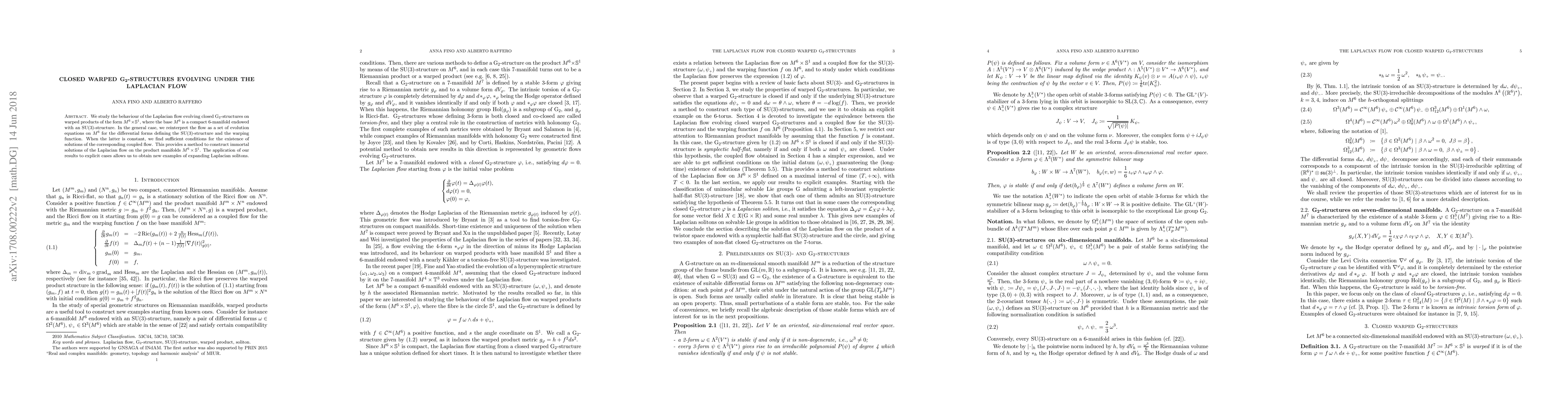 We study the behaviour of the Laplacian flow evolving closed G$_2$-structures on warped products of the form $M^6\times{\mathbb S}^1$, where the base $M^6$ is a compact 6-manifold endowed with an SU(3)-structure. In the general case, we reinterpret the flow as a set of evolution equations on $M^6$ for the differential forms defining the SU(3)-structure and the warping function. When the latter is constant, we find sufficient conditions for the existence of solutions of the corresponding coupled flow. This provides a method to construct immortal solutions of the Laplacian flow on the product manifolds $M^6\times{\mathbb S}^1$. The application of our results to explicit cases allows us to obtain new examples of expanding Laplacian solitons.