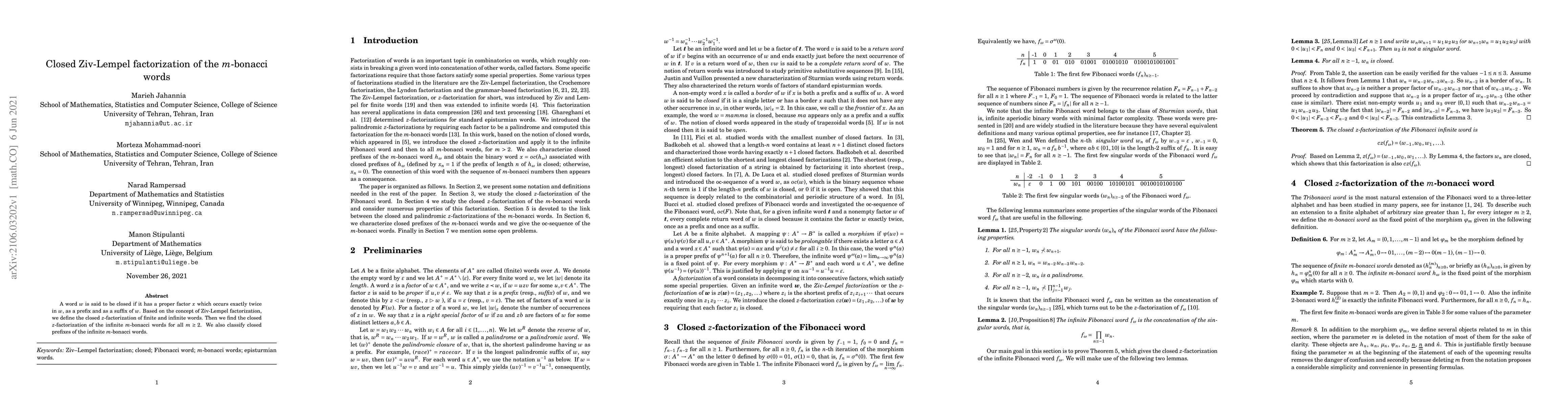 This paper introduces the concept of closed Ziv-Lempel factorization for words, defining it for both finite and infinite sequences. It specifically examines the closed factorization of infinite $m$-bonacci words for $m \geq 2$ and classifies their closed prefixes.