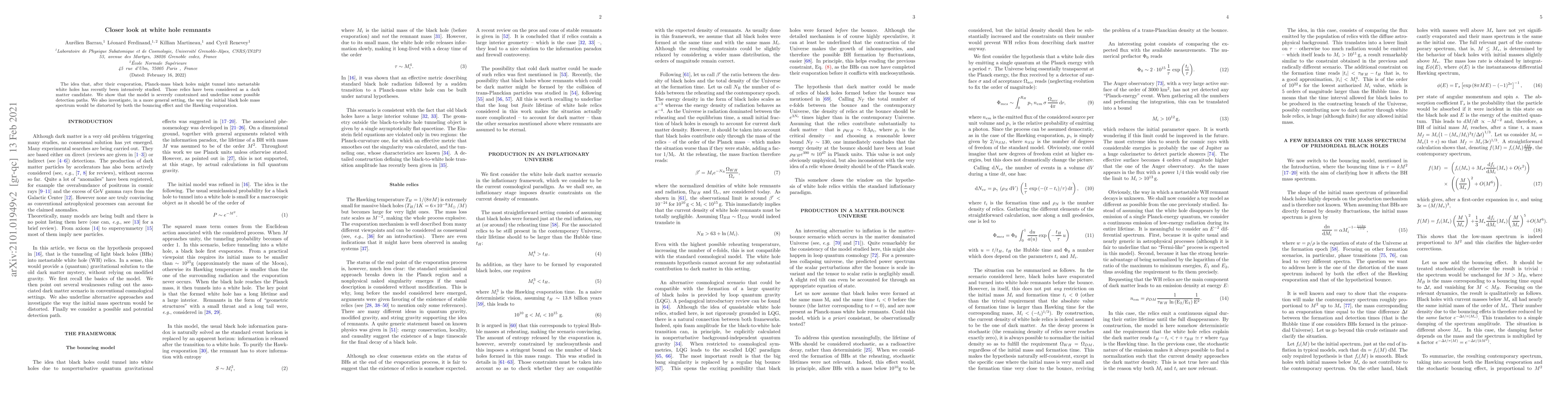 The idea that, after their evaporation, Planck-mass black holes might tunnel into metastable white holes has recently been intensively studied. Those relics have been considered as a dark matter candidate. We show that the model is severely constrained and underline some possible detection paths. We also investigate, in a more general setting, the way the initial black hole mass spectrum would be distorted by both the bouncing effect and the Hawking evaporation.