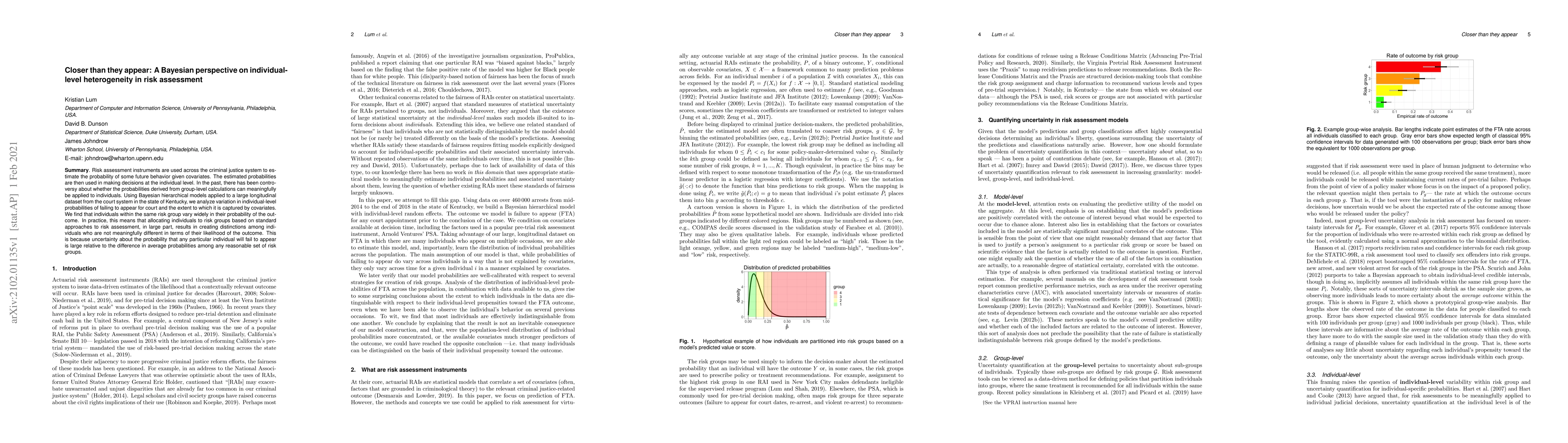 This paper uses Bayesian hierarchical models to analyze individual-level heterogeneity in risk assessment for court failure within a large Kentucky court system dataset. It finds that individuals within the same risk group exhibit significant variation in their likelihood of failing to appear, suggesting that current risk assessment methods may misclassify individuals who are not meaningfully different in their risk.