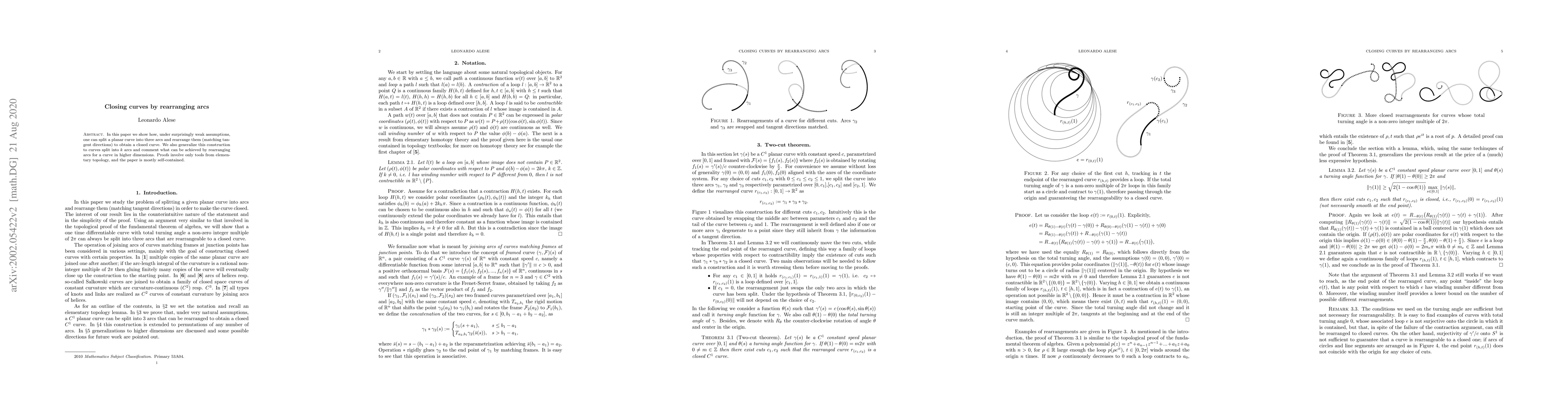This paper demonstrates how to close planar curves by splitting them into three arcs and rearranging them to match tangent directions, with generalizations to $k$ arcs and higher dimensions. The proofs rely solely on elementary topology and the paper is largely self-contained.