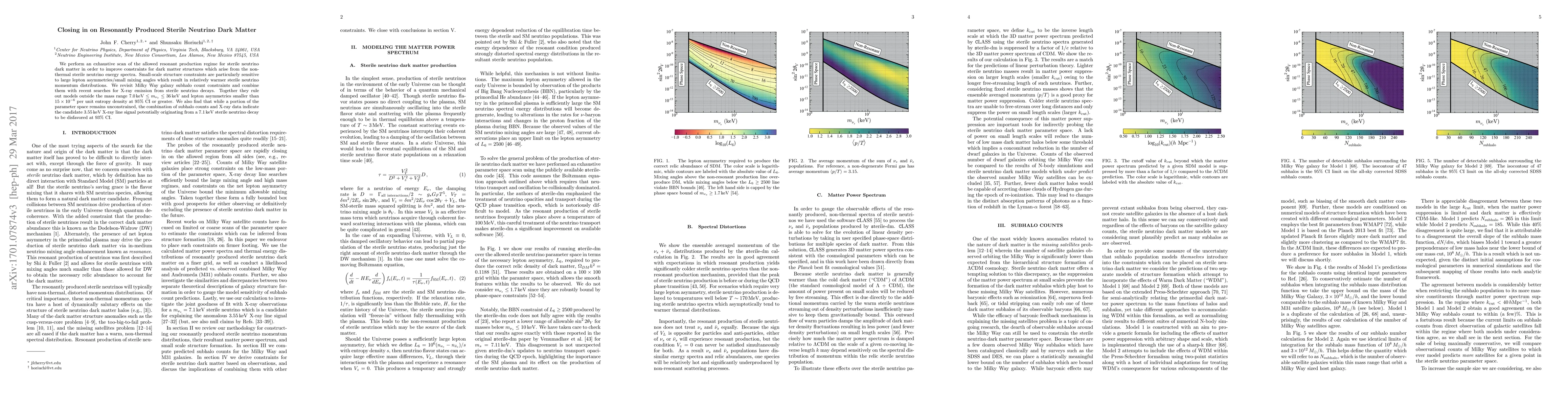 This paper scrutinizes the resonant production of sterile neutrino dark matter, focusing on constraints from Milky Way subhalo counts and X-ray emissions. It rules out sterile neutrinos with masses outside the range 7.0 keV to 36 keV and small lepton asymmetries, while indicating the 3.55 keV X-ray line signal is unlikely to originate from a 7.1 keV sterile neutrino decay.