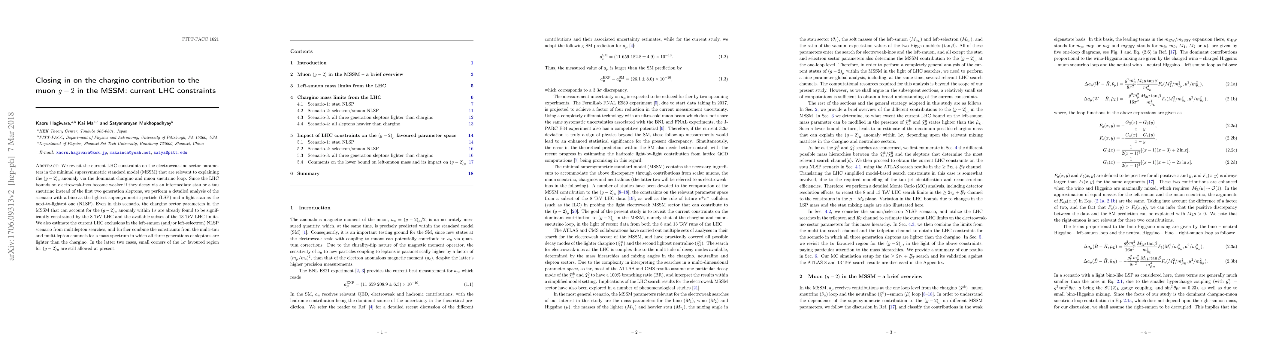 This paper examines LHC constraints on MSSM parameters crucial for explaining the muon g-2 anomaly through chargino and muon sneutrino loops. Even with a bino LSP and light stau NLSP, 8 & 13 TeV LHC limits significantly constrain the chargino sector parameters needed to match the (g-2)_μ anomaly within 1σ. Despite this, small regions of the favored (g-2)_μ space remain possible in NLSP scenarios involving left-smuon or left-selectron, combining multi-tau and multi-lepton search constraints.