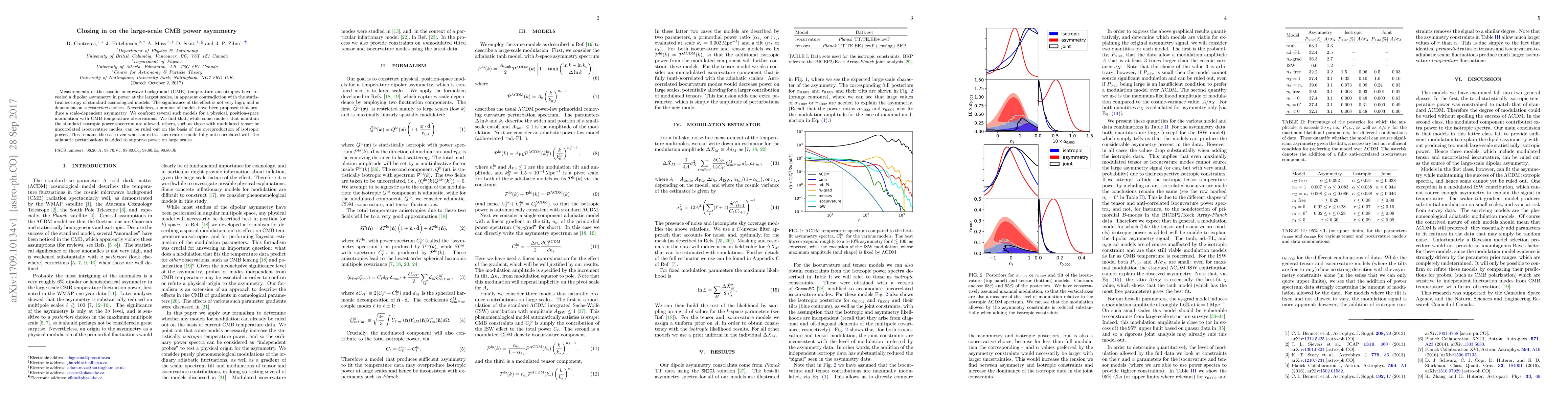 This paper investigates the large-scale asymmetry in cosmic microwave background (CMB) temperature anisotropies, finding that while some models maintain the standard isotropic power spectrum, others, including those with modulated tensor or uncorrelated isocurvature modes, are ruled out due to overproduction of isotropic power.