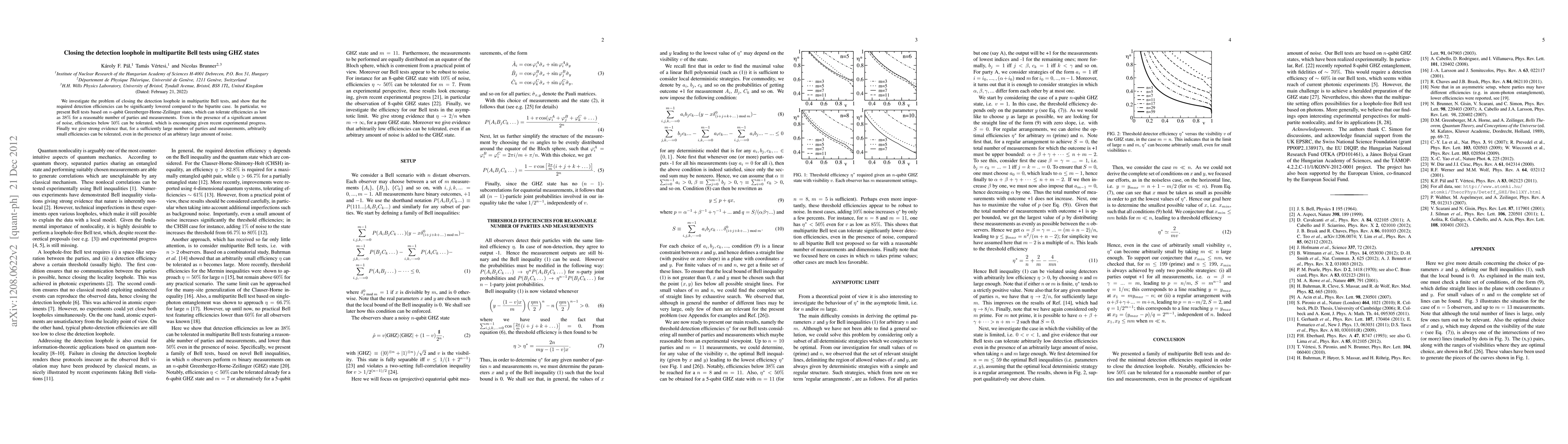This paper explores closing the detection loophole in multipartite Bell tests using n-qubit Greenberger-Horne-Zeilinger (GHZ) states, demonstrating that detection efficiencies can be significantly lowered to as low as 38% while tolerating noise, with promising implications for experimental advancements. For a sufficiently large number of parties and measurements, it suggests that arbitrarily small efficiencies can be tolerated even with substantial noise.