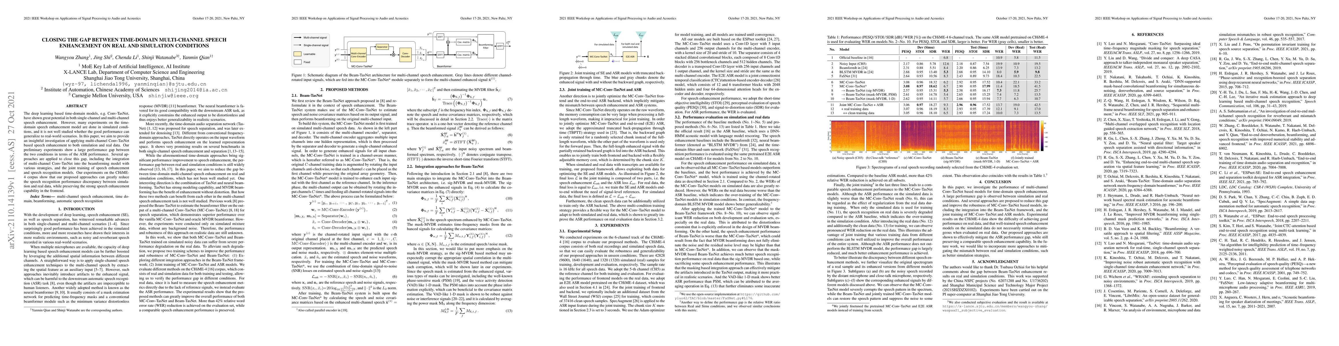 This paper investigates the application of multi-channel Conv-TasNet for speech enhancement in both simulation and real-world conditions, finding a significant performance gap. Proposed approaches, including beamforming integration and joint training, effectively reduce this gap while maintaining strong enhancement capabilities.