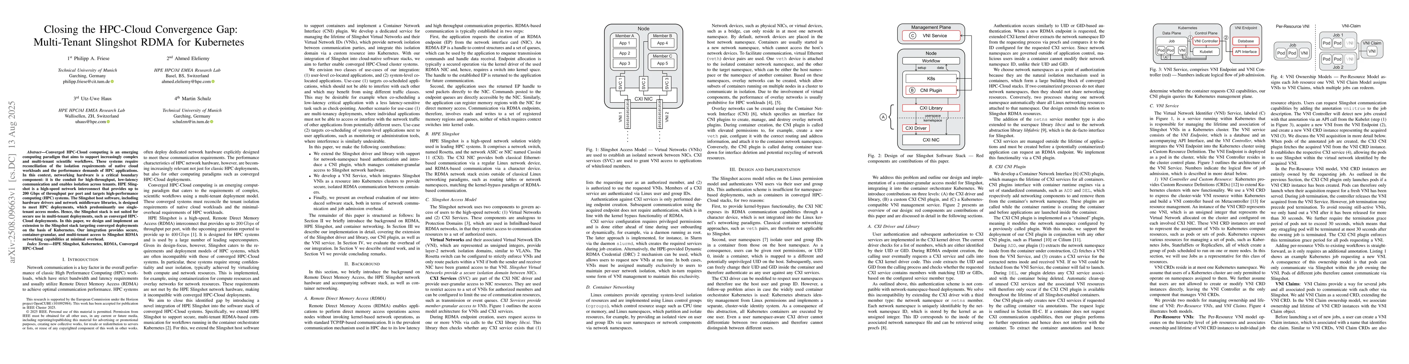 Converged HPC-Cloud computing is an emerging computing paradigm that aims to support increasingly complex and multi-tenant scientific workflows. These systems require reconciliation of the isolation requirements of native cloud workloads and the performance demands of HPC applications. In this context, networking hardware is a critical boundary component: it is the conduit for high-throughput, low-latency communication and enables isolation across tenants. HPE Slingshot is a high-speed network interconnect that provides up to 200 Gbps of throughput per port and targets high-performance computing (HPC) systems. The Slingshot host software, including hardware drivers and network middleware libraries, is designed to meet HPC deployments, which predominantly use single-tenant access modes. Hence, the Slingshot stack is not suited for secure use in multi-tenant deployments, such as converged HPC-Cloud deployments. In this paper, we design and implement an extension to the Slingshot stack targeting converged deployments on the basis of Kubernetes. Our integration provides secure, container-granular, and multi-tenant access to Slingshot RDMA networking capabilities at minimal overhead.