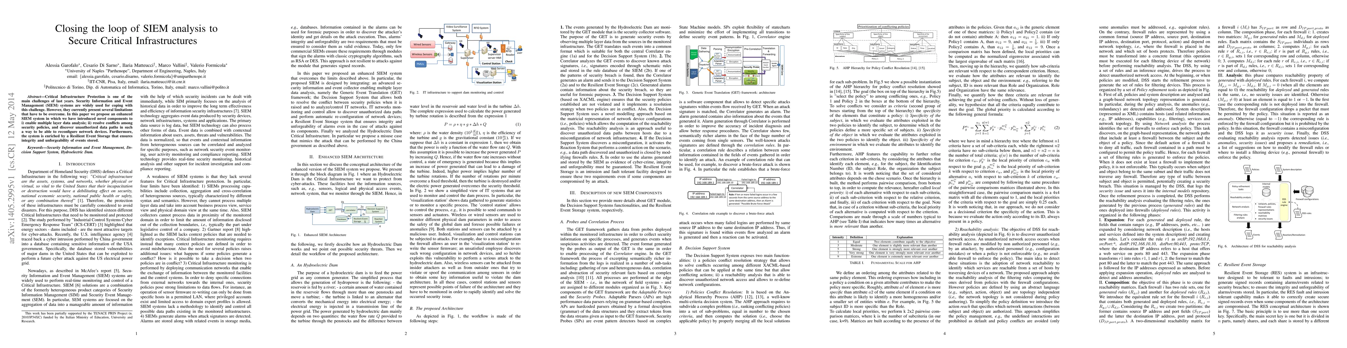 Critical Infrastructure Protection is one of the main challenges of last years. Security Information and Event Management (SIEM) systems are widely used for coping with this challenge. However, they currently present several limitations that have to be overcome. In this paper we propose an enhanced SIEM system in which we have introduced novel components to i) enable multiple layer data analysis; ii) resolve conflicts among security policies, and discover unauthorized data paths in such a way to be able to reconfigure network devices. Furthermore, the system is enriched by a Resilient Event Storage that ensures integrity and unforgeability of events stored.