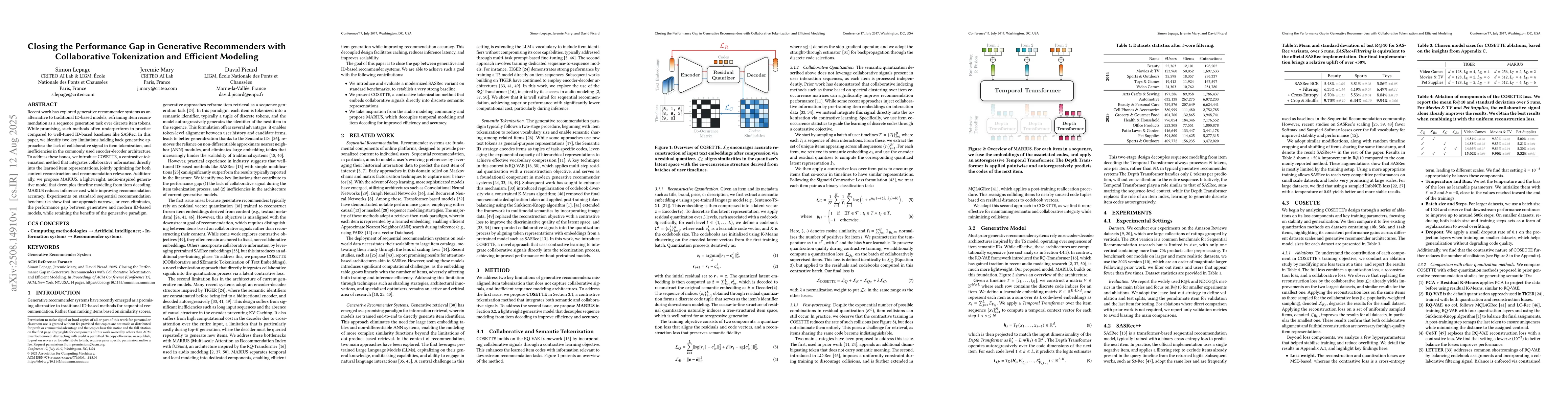 Recent work has explored generative recommender systems as an alternative to traditional ID-based models, reframing item recommendation as a sequence generation task over discrete item tokens. While promising, such methods often underperform in practice compared to well-tuned ID-based baselines like SASRec. In this paper, we identify two key limitations holding back generative approaches: the lack of collaborative signal in item tokenization, and inefficiencies in the commonly used encoder-decoder architecture. To address these issues, we introduce COSETTE, a contrastive tokenization method that integrates collaborative information directly into the learned item representations, jointly optimizing for both content reconstruction and recommendation relevance. Additionally, we propose MARIUS, a lightweight, audio-inspired generative model that decouples timeline modeling from item decoding. MARIUS reduces inference cost while improving recommendation accuracy. Experiments on standard sequential recommendation benchmarks show that our approach narrows, or even eliminates, the performance gap between generative and modern ID-based models, while retaining the benefits of the generative paradigm.