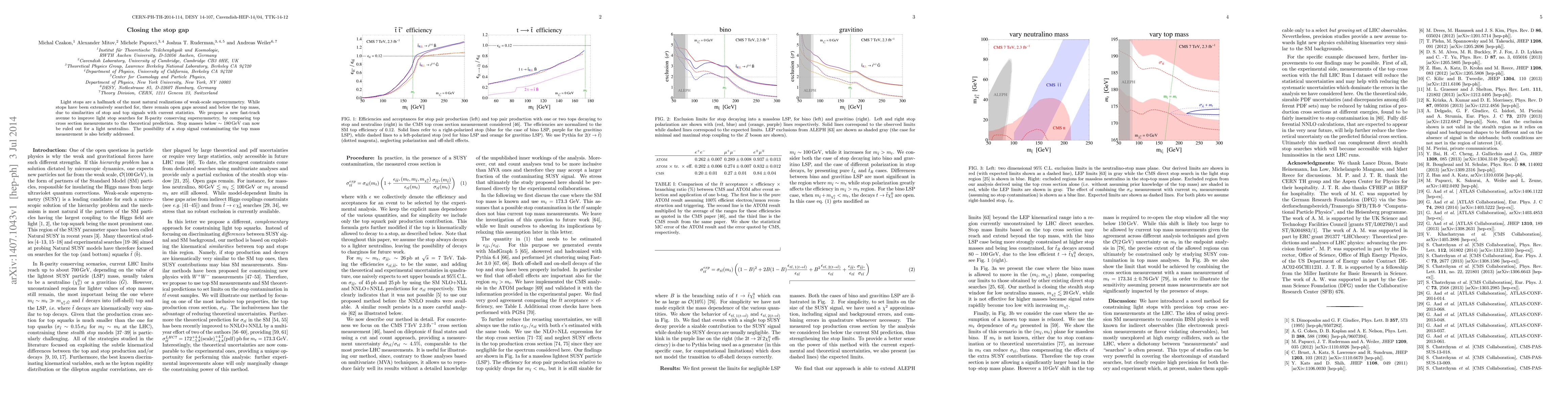 Light stops are a hallmark of the most natural realizations of weak-scale supersymmetry. While stops have been extensively searched for, there remain open gaps around and below the top mass, due to similarities of stop and top signals with current statistics. We propose a new fast-track avenue to improve light stop searches for R-parity conserving supersymmetry, by comparing top cross section measurements to the theoretical prediction. Stop masses below ~ 180 GeV can now be ruled out for a light neutralino. The possibility of a stop signal contaminating the top mass measurement is also briefly addressed.