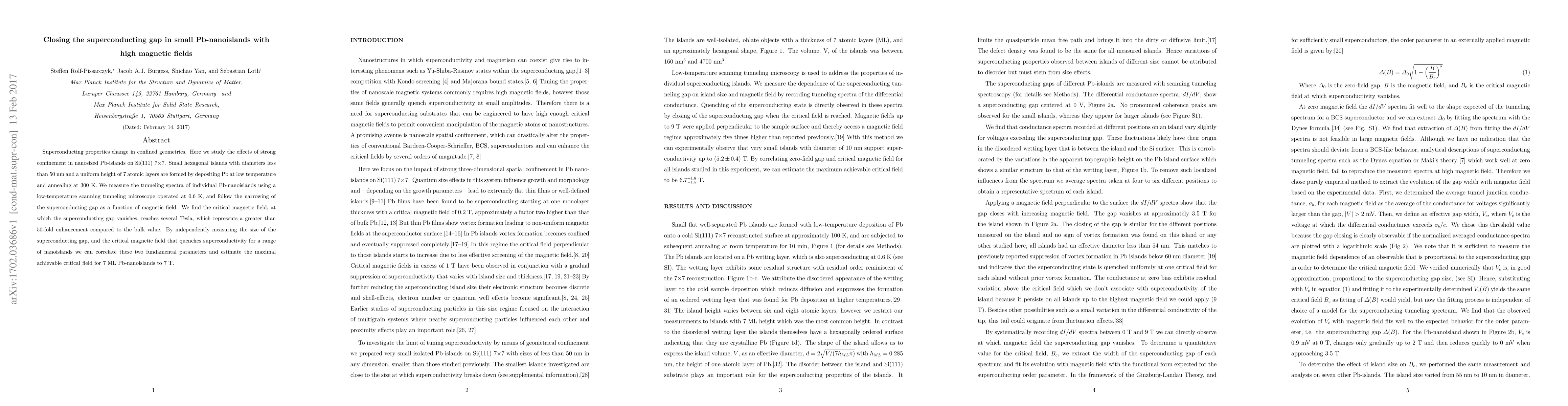 This study investigates how strong magnetic fields affect the superconducting properties of small Pb-nanoislands on Si(111) substrates. The research reveals that the critical magnetic field required to close the superconducting gap in these nanoislands can reach several Tesla, significantly higher than the bulk Pb value, indicating a potential pathway for enhancing superconducting performance in nanoscale materials.