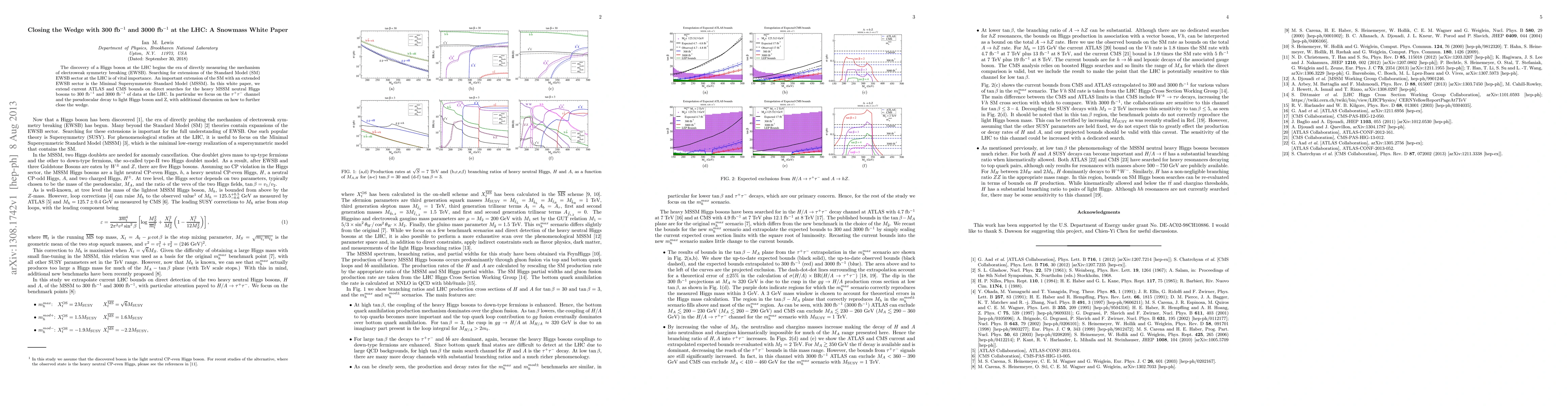 The discovery of a Higgs boson at the LHC begins the era of directly measuring the mechanism of electroweak symmetry breaking (EWSB). Searching for extensions of the Standard Model (SM) EWSB sector at the LHC is of vital importance. An important extension of the SM with an extended EWSB sector is the Minimal Supersymmetric Standard Model (MSSM). In this white paper, we extend current ATLAS and CMS bounds on direct searches for the heavy MSSM neutral Higgs bosons to 300 fb^-1 and 3000 fb^-1 of data at the LHC. In particular we focus on the \tau^+\tau^- channel and the pseudoscalar decay to light Higgs boson and Z, with additional discussion on how to further close the wedge.