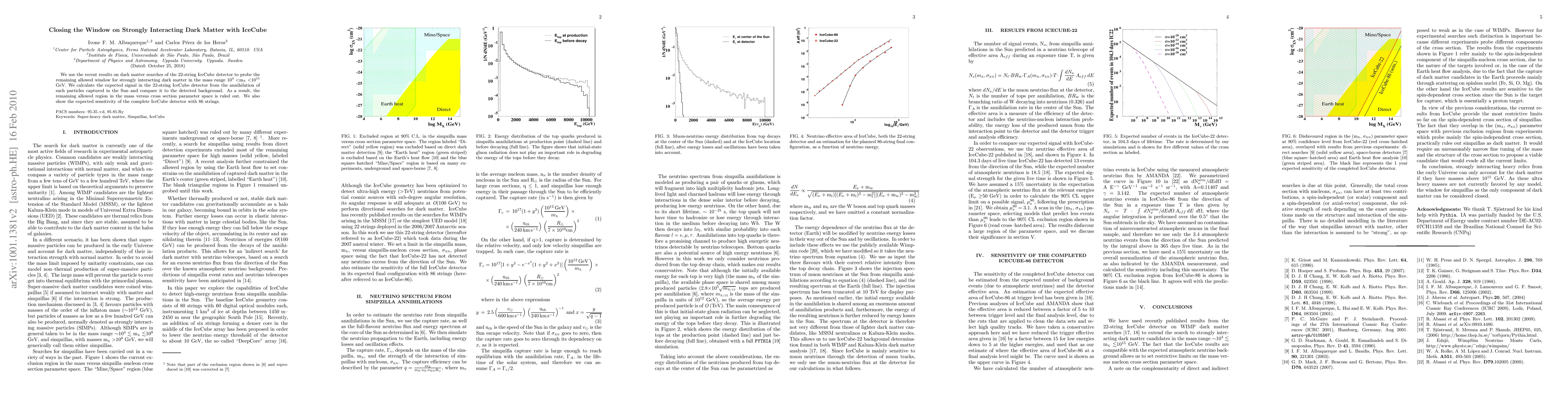This study utilizes IceCube's 22-string data to investigate strongly interacting dark matter in the mass range of 10^4 to 10^15 GeV, finding no allowed region for such dark matter in the mass versus cross section parameter space. The complete 86-string IceCube detector is expected to further enhance sensitivity.