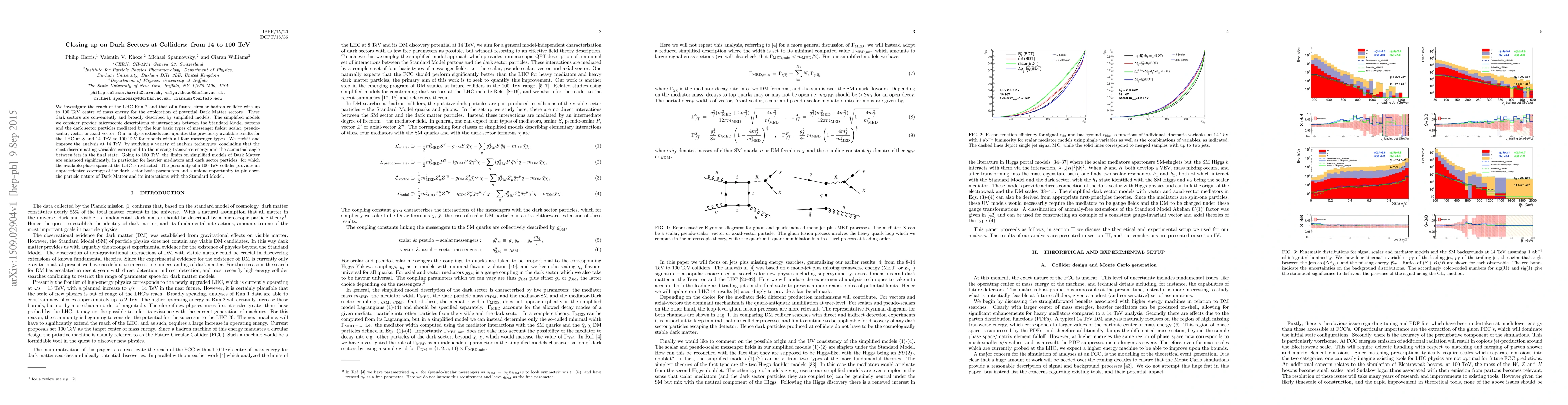 This paper explores the potential of the LHC and a future 100 TeV collider to detect Dark Matter sectors through simplified models involving scalar, pseudo-scalar, vector, or axial-vector messenger fields. The analysis shows significant improvements in detecting heavier dark sector particles at higher energies, highlighting the unique opportunity provided by a 100 TeV collider to uncover Dark Matter interactions.