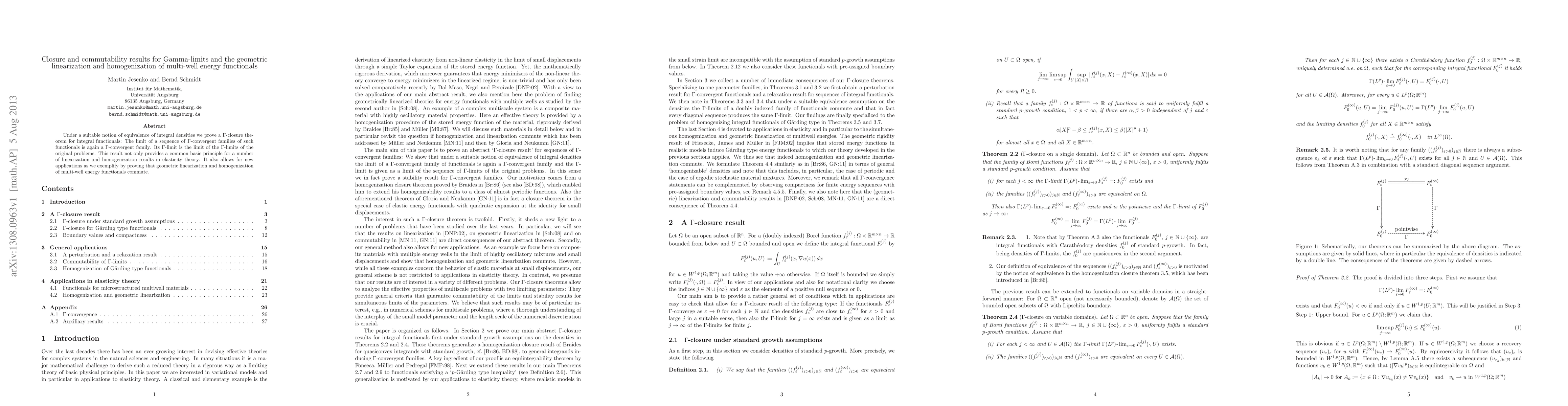This paper proves a $\Gamma$-closure theorem for integral functionals, showing that the limit of a sequence of $\Gamma$-convergent families is itself $\Gamma$-convergent. The result demonstrates commutativity in geometric linearization and homogenization of multi-well energy functionals.