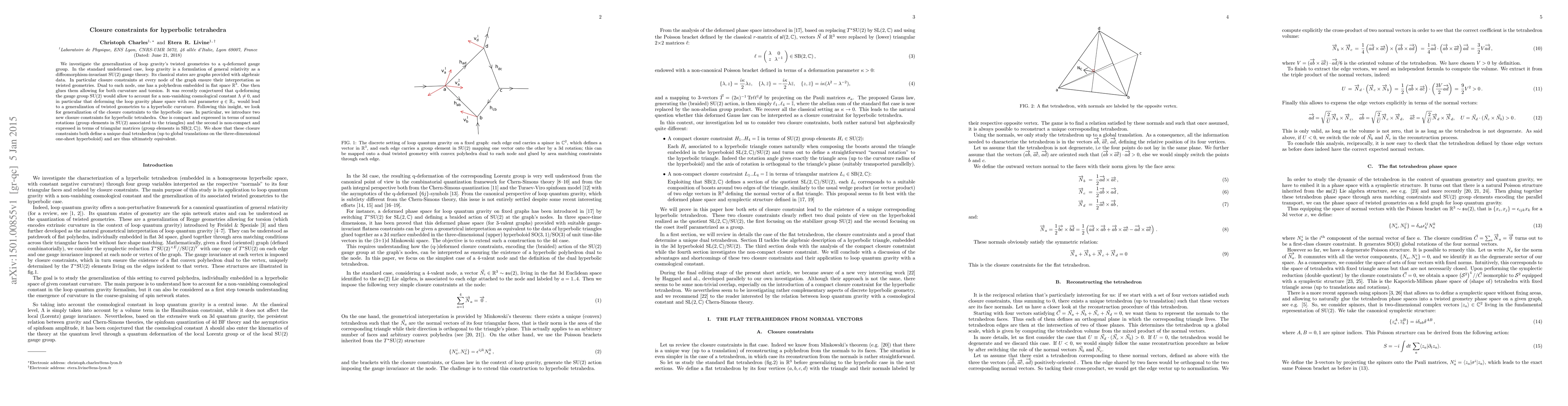 This paper explores the generalization of loop gravity's closure constraints to q-deformed gauge groups, introducing new constraints for hyperbolic tetrahedra. It proposes two distinct closure constraints—one compact and one non-compact—that uniquely define a dual tetrahedron and are ultimately equivalent.