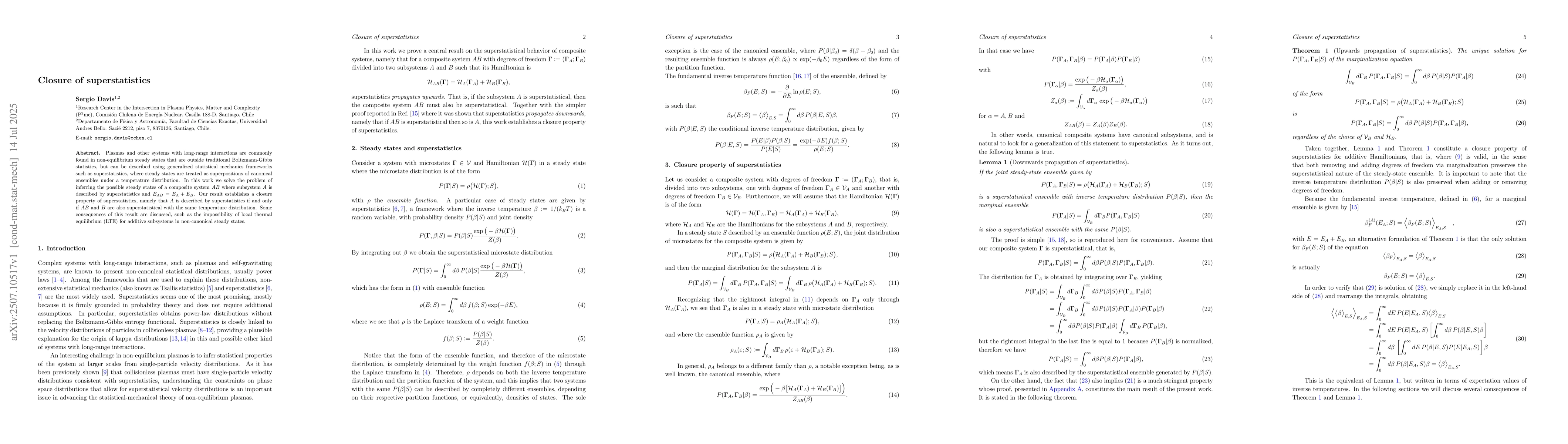 Plasmas and other systems with long-range interactions are commonly found in non-equilibrium steady states that are outside traditional Boltzmann-Gibbs statistics, but can be described using generalized statistical mechanics frameworks such as superstatistics, where steady states are treated as superpositions of canonical ensembles under a temperature distribution. In this work we solve the problem of inferring the possible steady states of a composite system $AB$ where subsystem $A$ is described by superstatistics and $E_{AB} = E_A + E_B$. Our result establishes a closure property of superstatistics, namely that $A$ is described by superstatistics if and only if $AB$ and $B$ are also superstatistical with the same temperature distribution. Some consequences of this result are discussed, such as the impossibility of local thermal equilibrium (LTE) for additive subsystems in non-canonical steady states.