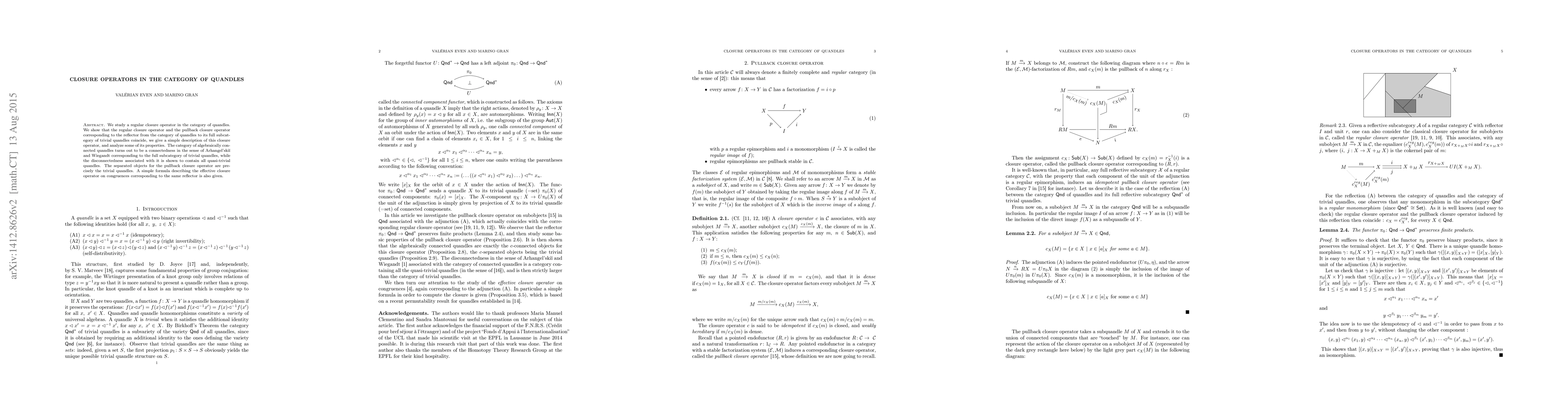 A study on quandles reveals that a regular closure operator coincides with another closure operator in its subcategory of trivial quandles, showing properties related to connectedness and disconnectedness.