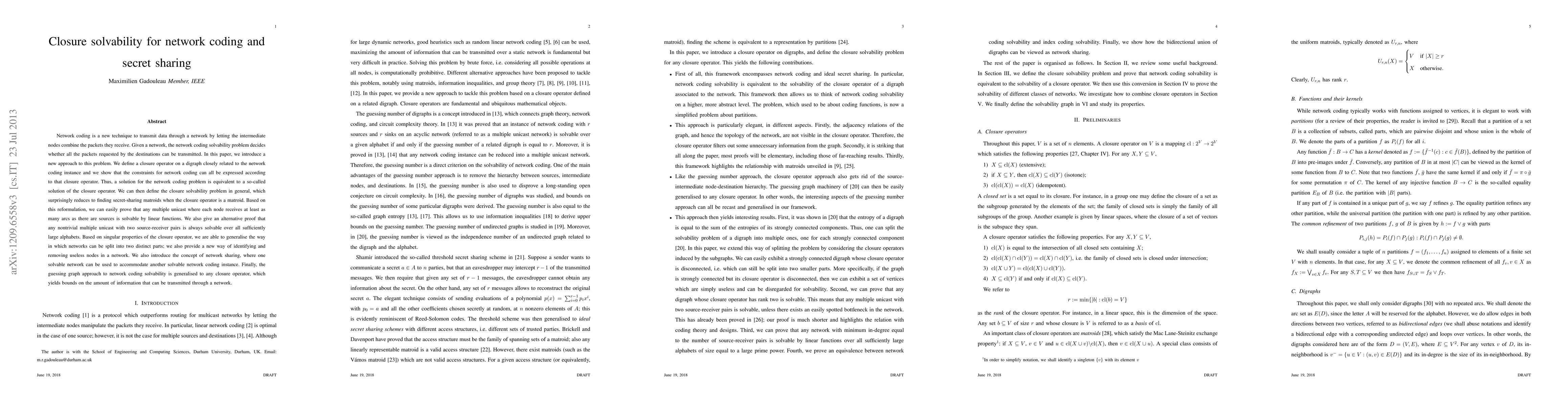 This paper introduces a closure operator on a digraph to address network coding solvability, showing that network coding constraints can be expressed through this operator. It reveals that closure solvability reduces to finding secret-sharing matroids, proving solvability for multiple unicasts and generalizing network splitting and node removal techniques.