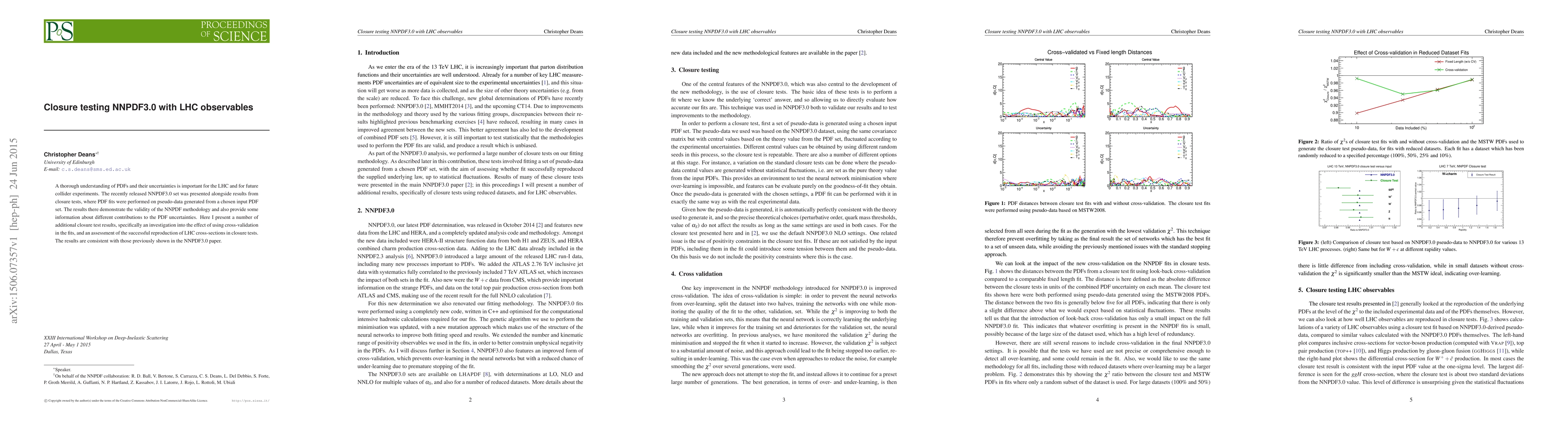 A thorough understanding of PDFs and their uncertainties is important for the LHC and for future collider experiments. The recently released NNPDF3.0 set was presented alongside results from closure tests, where PDF fits were performed on pseudo-data generated from a chosen input PDF set. The results there demonstrate the validity of the NNPDF methodology and also provide some information about different contributions to the PDF uncertainties. Here I present a number of additional closure test results, specifically an investigation into the effect of using cross-validation in the fits, and an assessment of the successful reproduction of LHC cross-sections in closure tests. The results are consistent with those previously shown in the NNPDF3.0 paper.