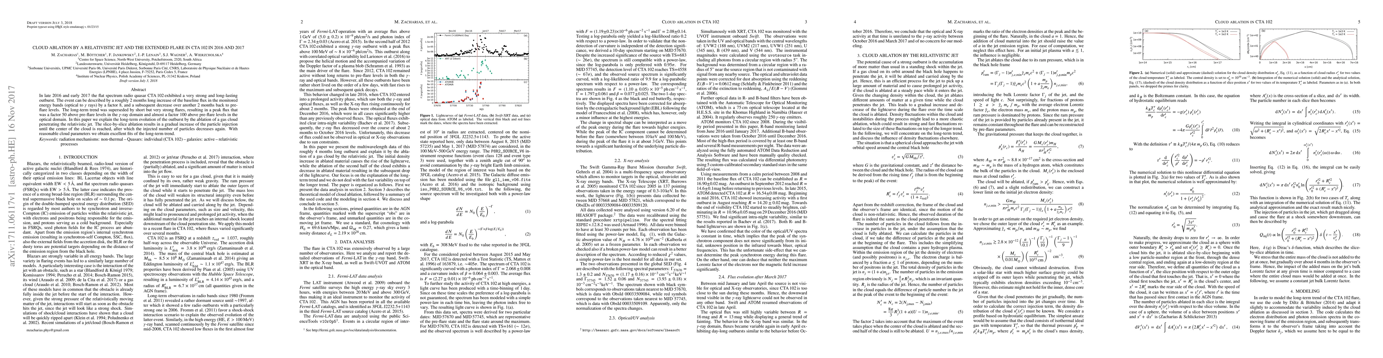 A 2016-2017 outburst in radio quasar CTA 102 was explained as cloud ablation by a relativistic jet, with the event lasting 2 months and peak flux increasing by a factor of 50-100. The study obtained excellent fits using reasonable cloud parameters.