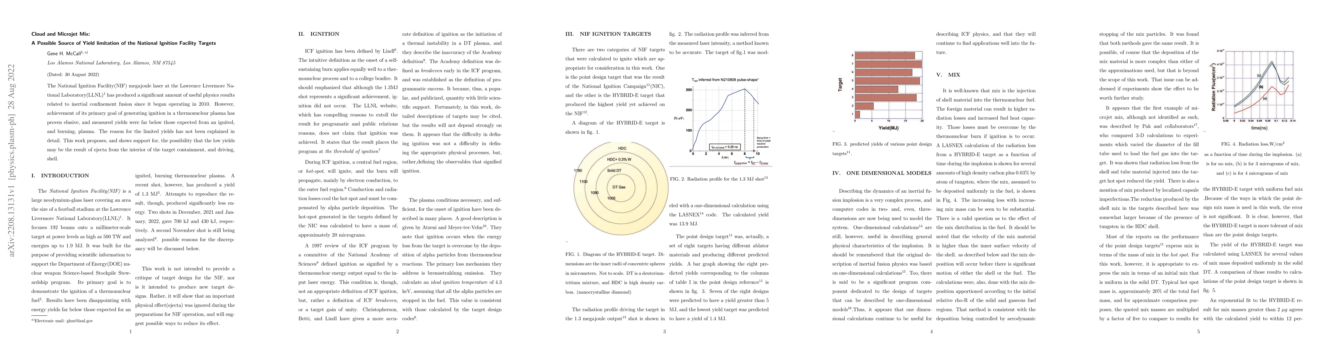 This paper investigates the National Ignition Facility's (NIF) low yields in inertial fusion experiments, suggesting that ejecta from the target's interior and shell, possibly in the form of cloud and microjet mix, could be a significant source of yield limitation. The study supports this hypothesis with relevant physics observations.